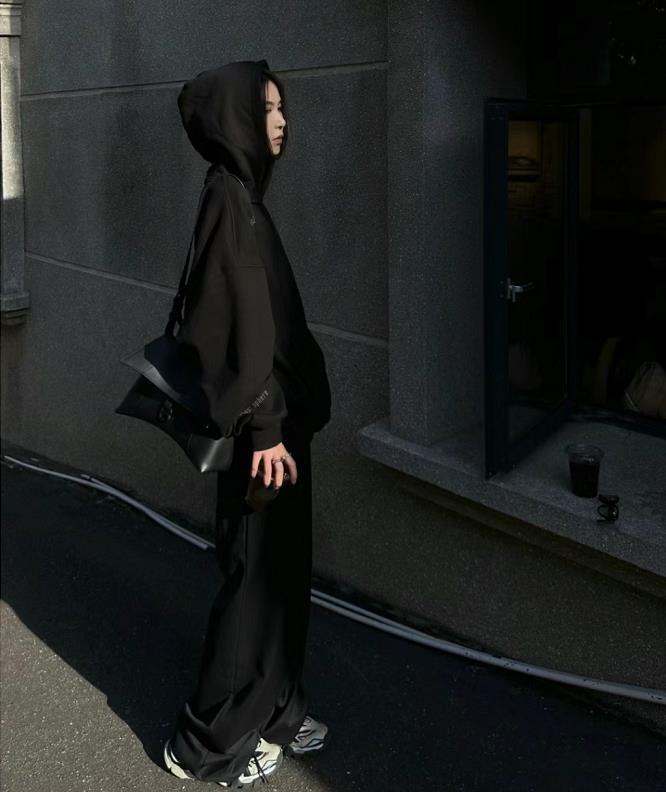 2024年的春天,如果要選擇一條褲子來穿的話,那麼就可以入手拖地褲,休閒舒適又好看。灰色衛衣+黑色牛仔拖地褲,內搭穿了件白色t恤,露出一點白色T恤,輕鬆打造出層次。