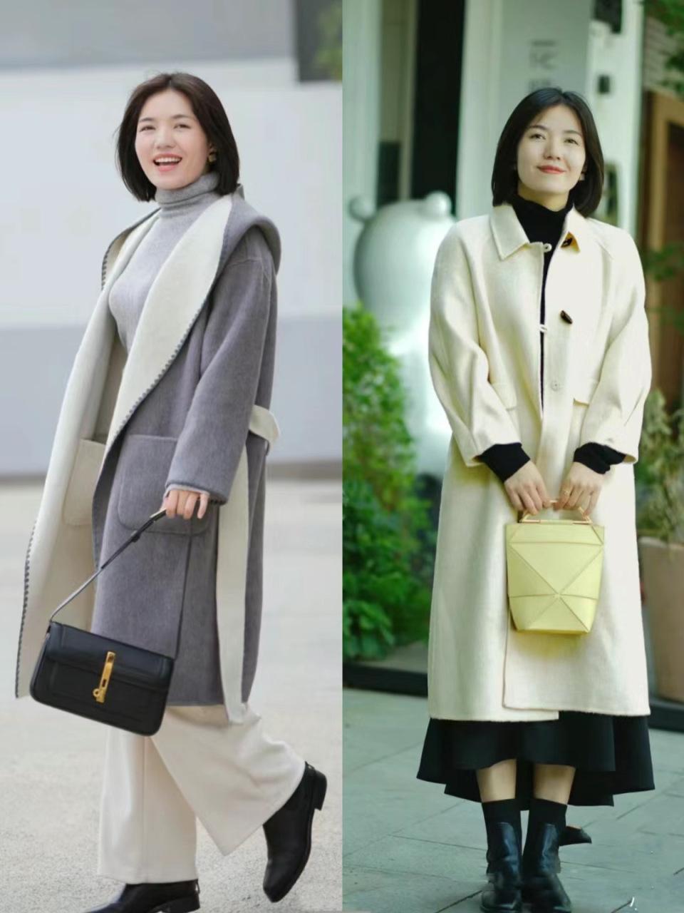 羊絨面料的大衣,雖然貴一些,但是保暖性和質感都更強。想要一件大衣穿起來體面又高級,而且能穿好幾年都不會掉價,完全可以選擇一件羊絨質地的大衣。
