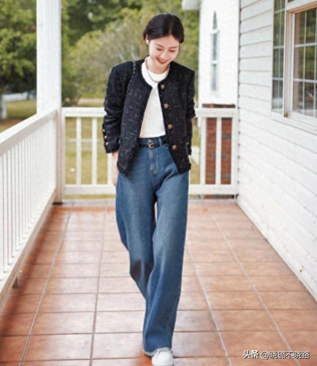 休閒減齡的漂亮褲裝,用牛仔的丹尼面料來作爲襯托,這種面料的支撐性很強,褲子表面可以拱起一些獨特的空間感,穿法就不會暴露腿型的肉感。