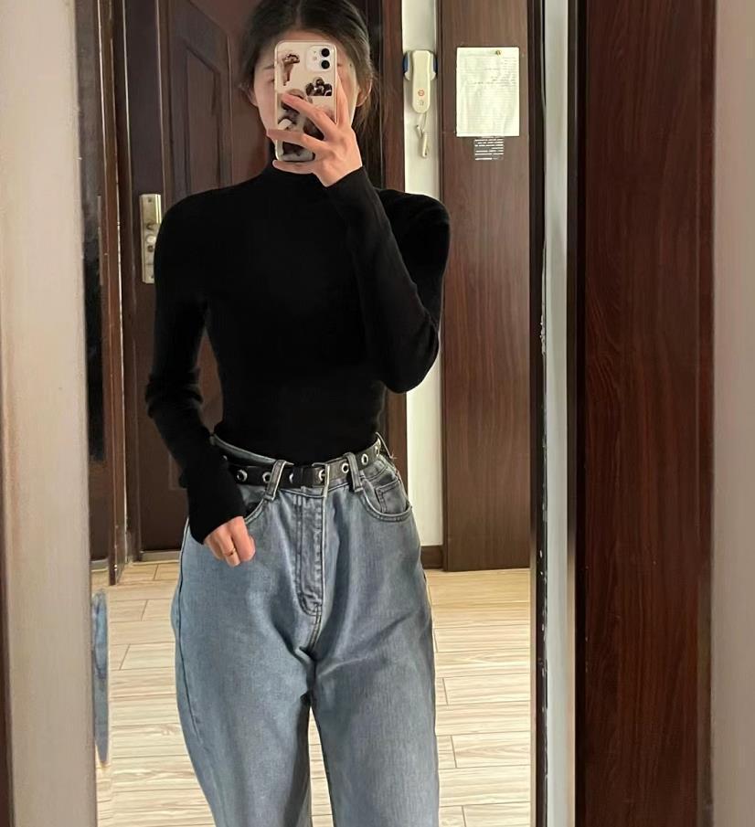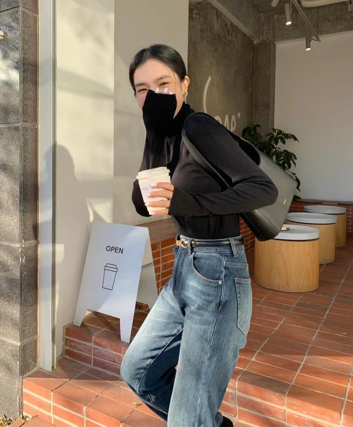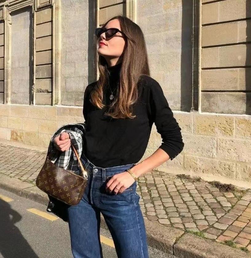 每年都不會過時的高領毛衣,修身的版型,瘦一點的女生穿是真的美,單穿也很好看。搭配一條版型寬鬆些的牛仔褲就ok了,很時髦高級。