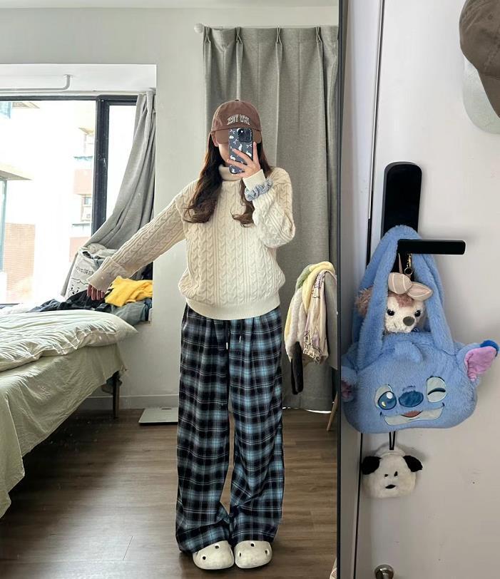 寬鬆百搭的高領毛衣,有些顯韓系的款,顏色帶着些少的復古氣息,高領設計,防風又保暖。選擇黑色闊腿長褲,真的非常顯瘦休閒。
