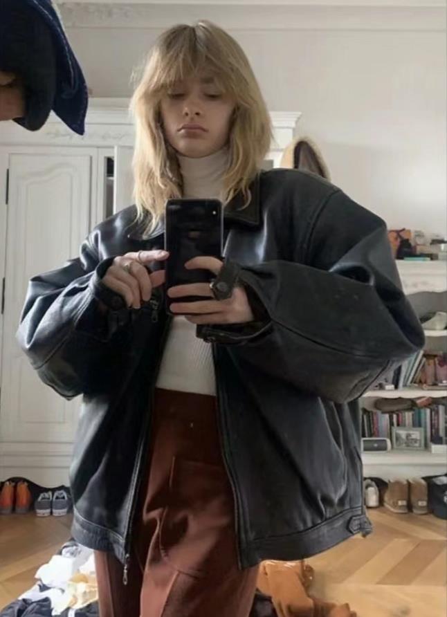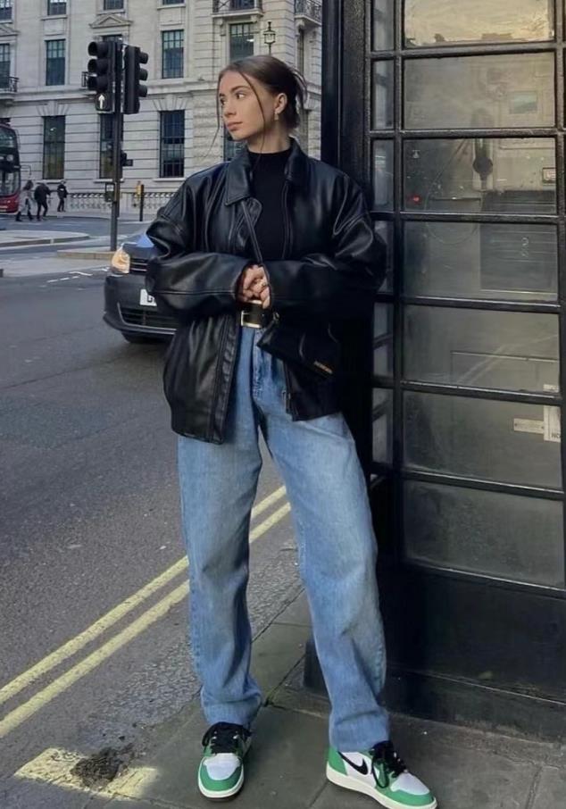 高領毛衣一直都是寒冷冬季裏必備的單品,特別是黑色的,超級百搭,與黑色皮衣外套組合,減少出錯率,雖然都是黑色,但彼此的材質不同,所以並不會單調。