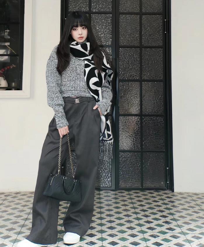 搭配黑色闊腿褲,黑白配色組合,是真的太時髦好看了,高級感十足。