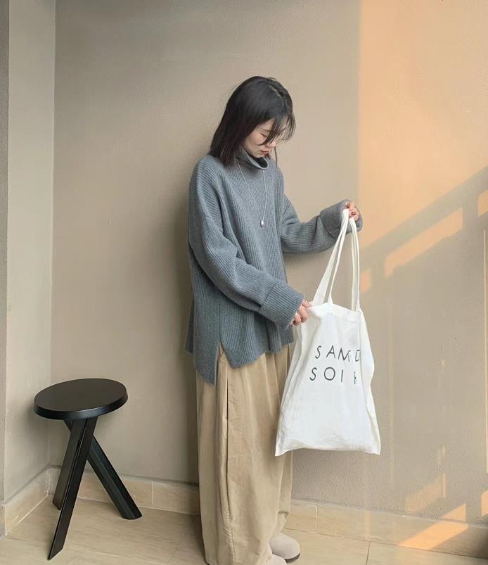在冬天,選擇這種高領毛衣來穿,真的很保暖,寬鬆的版型下,更顯瘦藏肉,單穿都超級好看的。