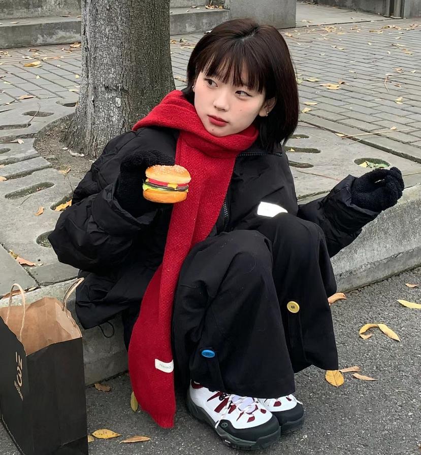 紅黑的組合,就是永不過時的配色,也十分耐看,黑色上衣加一條紅色圍巾,鞋子上也帶點紅色,這一套就真的是絕了。