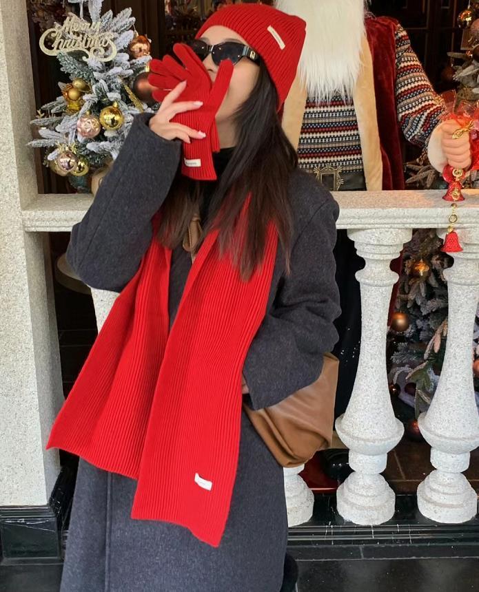 對於不喜歡選擇大面積紅色系單品的姐妹,最好的辦法就是給自己入手一些小面積的配飾了,例如帽子、圍巾或包包之類的。