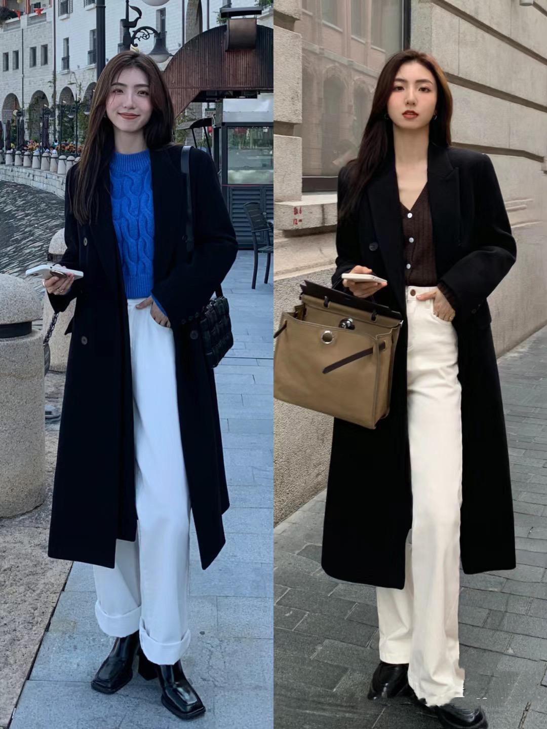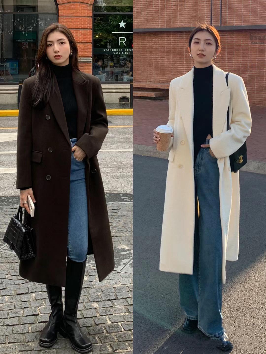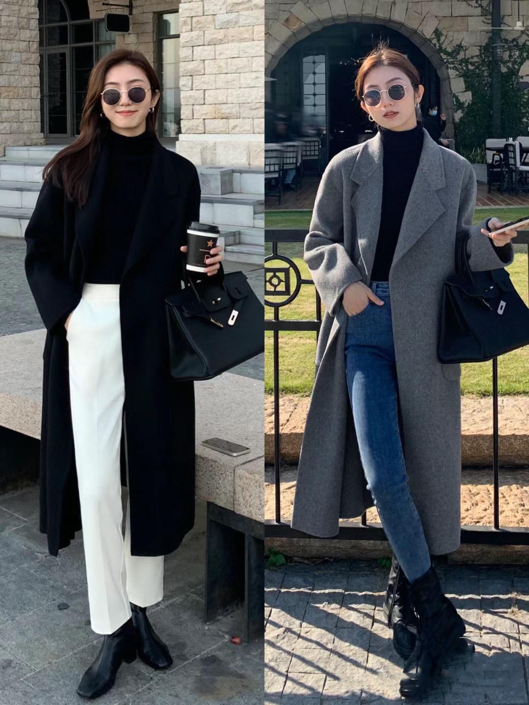 西裝風格的長大衣,經典的反駁領,有一種難得的體面。喜歡極簡風或者高級風穿搭的女性,都可以借鑑這種長大衣的搭配方式。