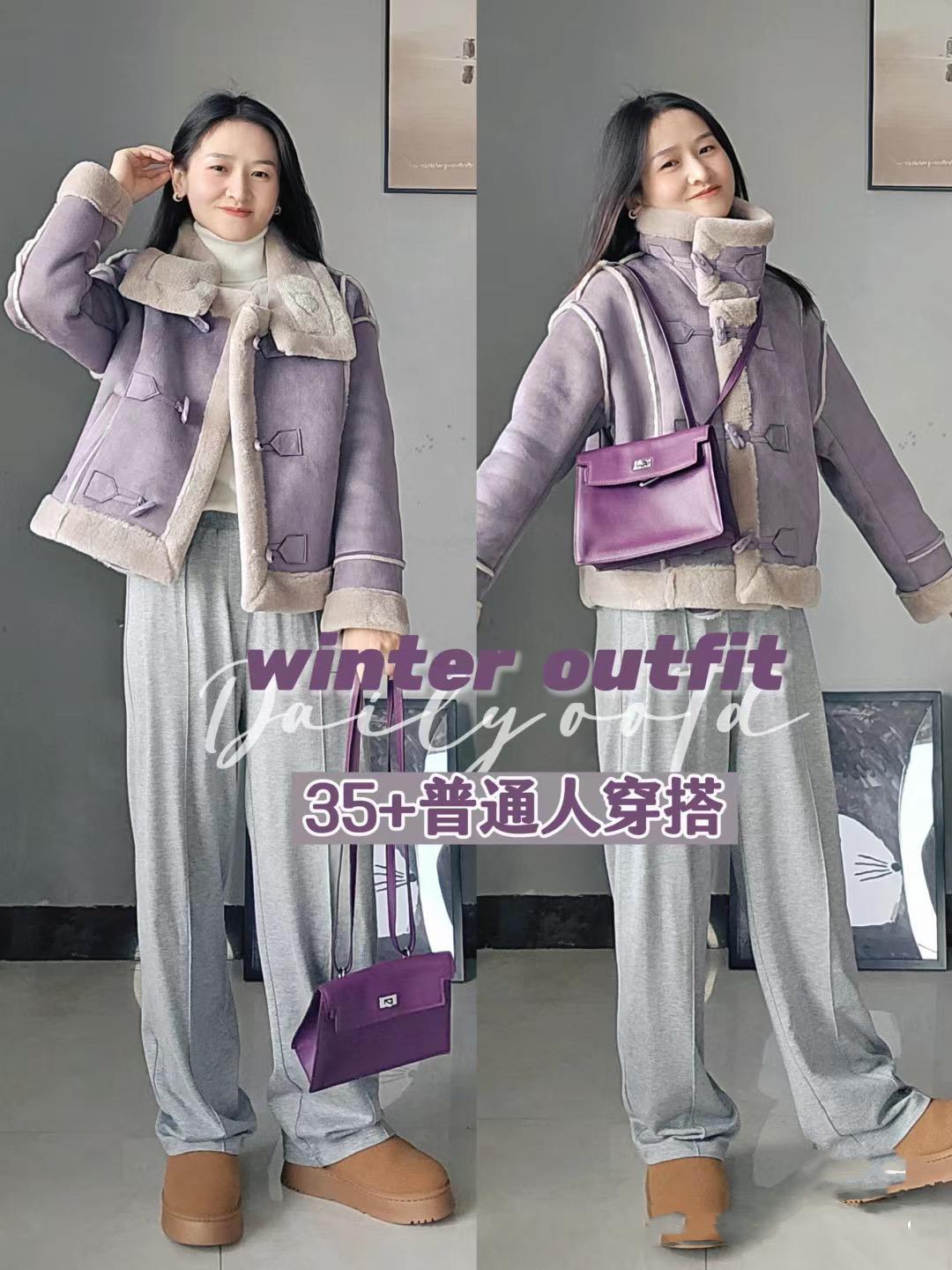 看了這位35+博主的穿搭才明白,原來皮毛一體外套也可以穿得那麼溫柔。一件紫色系的皮毛一體外套,溫柔貴氣、散發着女性魅力。