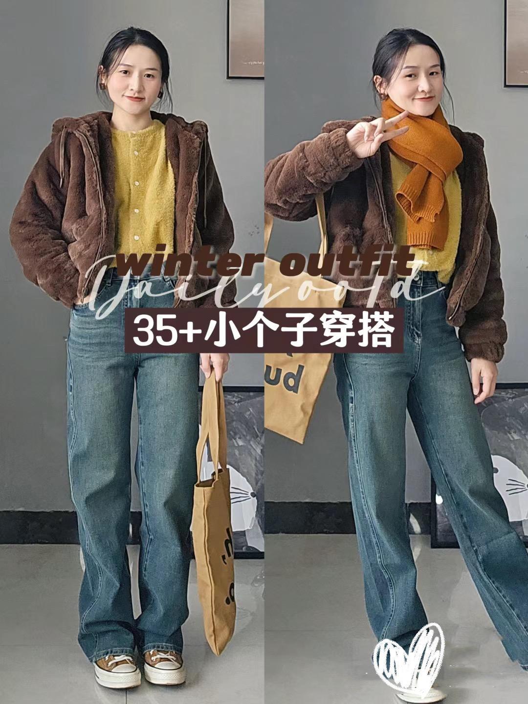 35+的小個子,依然適合上短下長的穿衣模板。泰迪色的毛絨外套,有一種洋氣又溫暖的效果,帶着幾分暖意、讓冬日裏的穿搭更加時尚。