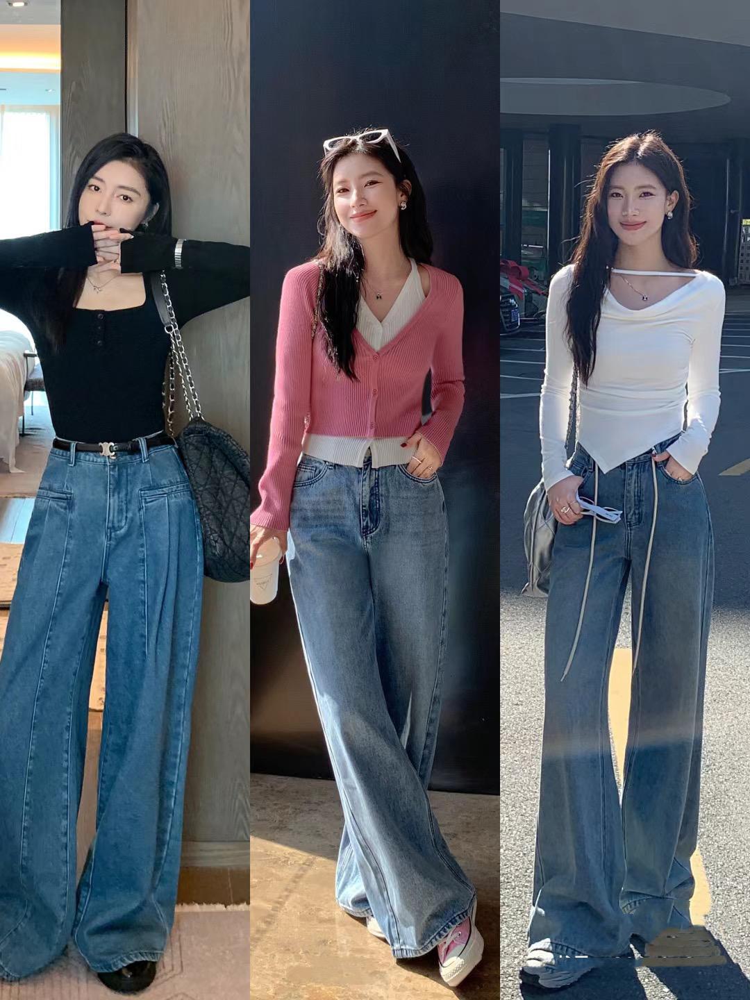 針對不同的腿型、以及不同的身材比例,我們可以搭配不同的高腰牛仔褲。大腿纖細的話,就穿稍微修身的微喇牛仔褲,整體腿型存在不足,還是高腰的闊腿牛仔褲更實用。