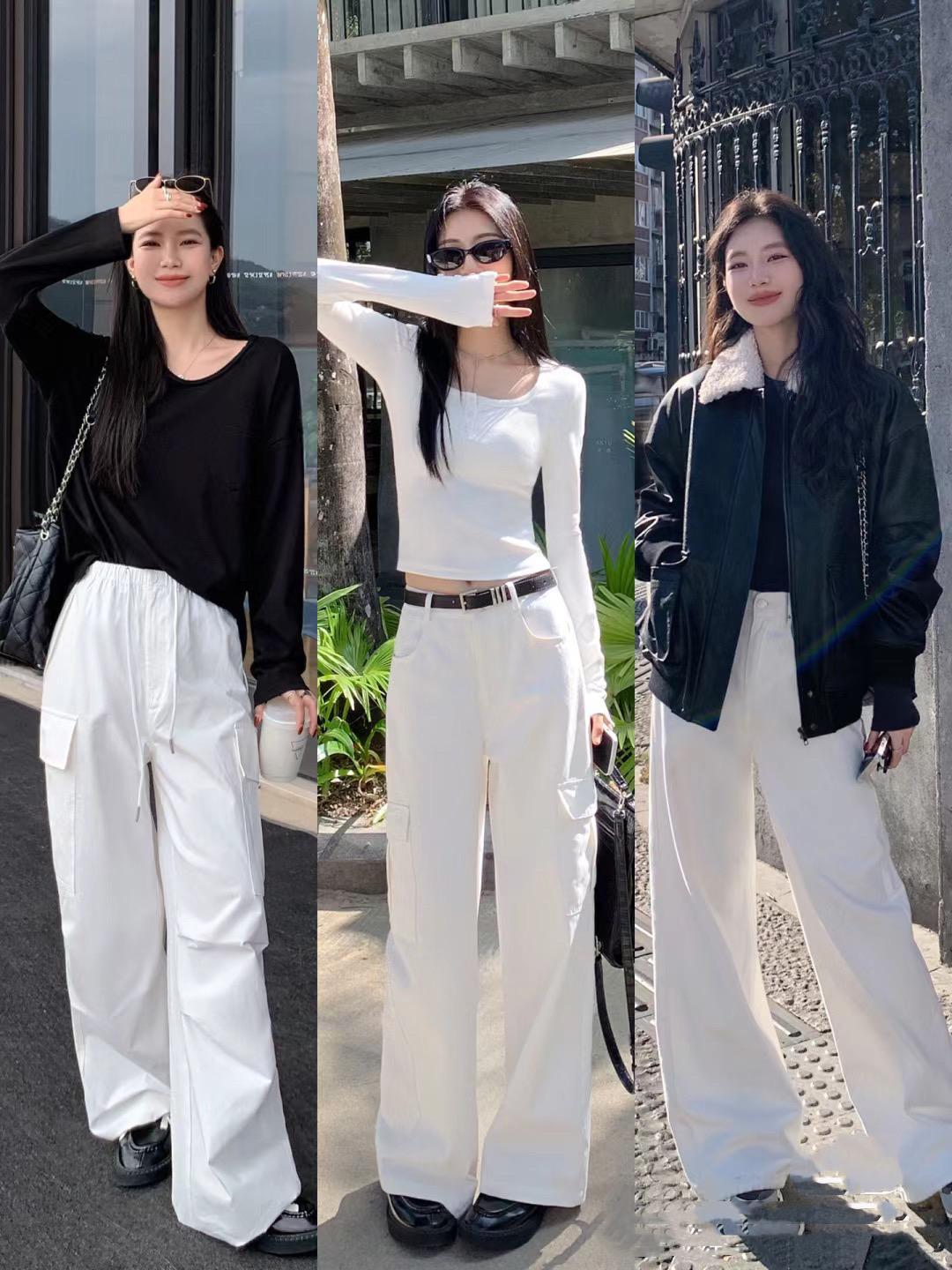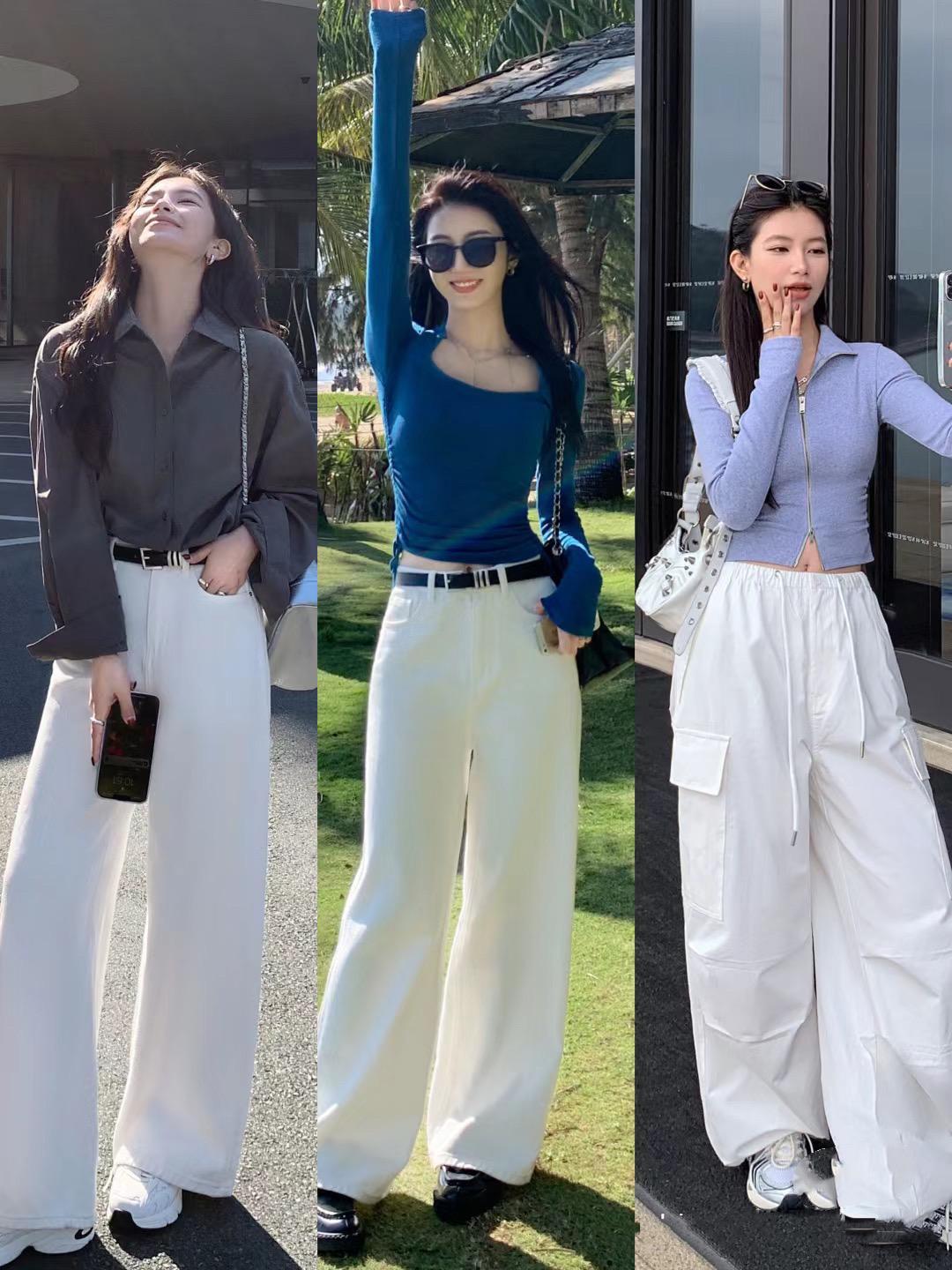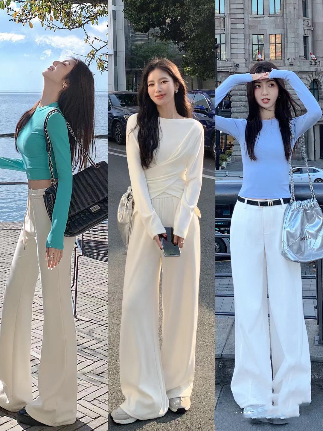 寬鬆的白色系闊腿褲,最好搭配修身的打底衫來穿着。不管是白色打底衫、還是黑色打底衫,都可以配寬鬆的闊腿褲,修身的打底衫,更容易塑造出女性的妖嬈姿態。