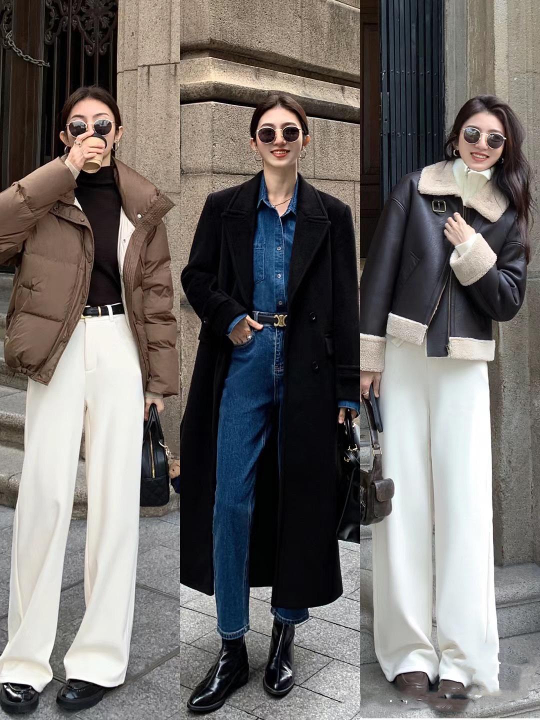 一條白色系的毛呢褲,垂墜且利落的剪裁,更容易塑造出“大長腿”的效果。即便是小個子的女生,或者羅圈腿、O型腿的人羣,在冬天也可以穿白色的毛呢褲。