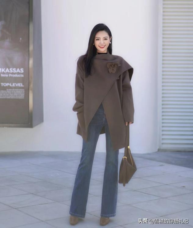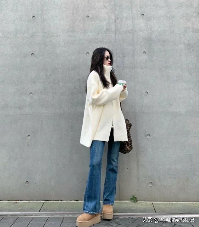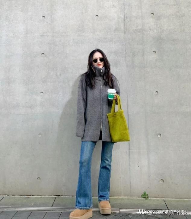 上淺下深的配套組合,能夠從容的去縮減你的腿型膨脹感,畢竟藍色和黑色的包容度很強,腿粗的女生可以穿的很自信,上半身的淺色,在羽絨服和大衣的配色選擇當中,都沒有約束,組合選擇非常多。