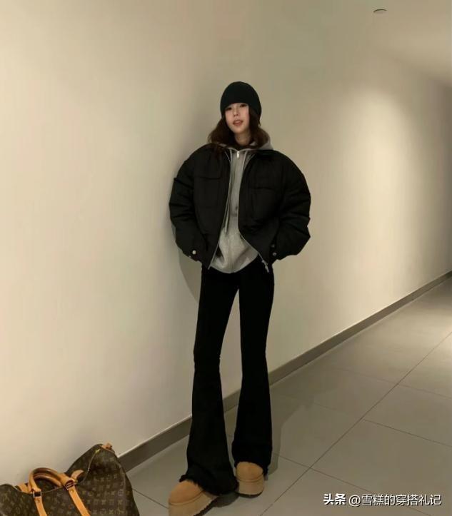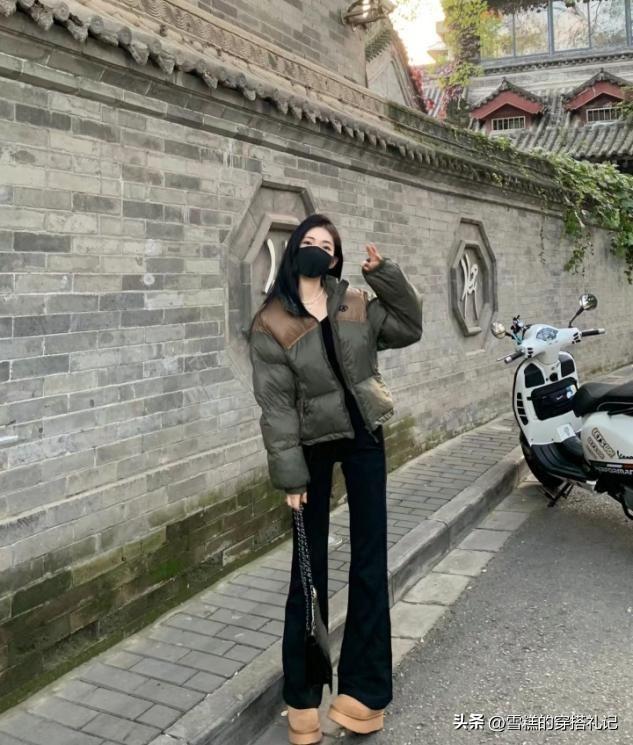 ⑶羽絨服穿法簡單幹淨,馬蹄褲寬度做好對稱