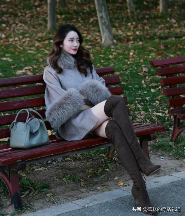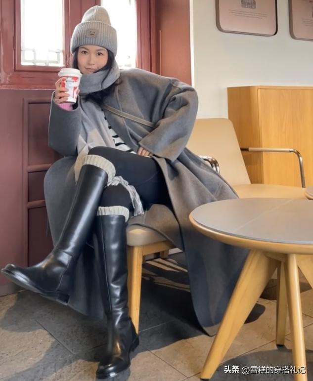 修身加長款式的靴子,最好能夠適當的服帖腿型,疊加長款外套的時候纔不會壓個子。外套的長度選擇以遮過膝蓋爲基礎,用尖嘴區的款式優化身材比例,不同場合之下的衣褲造型都很上檔次。