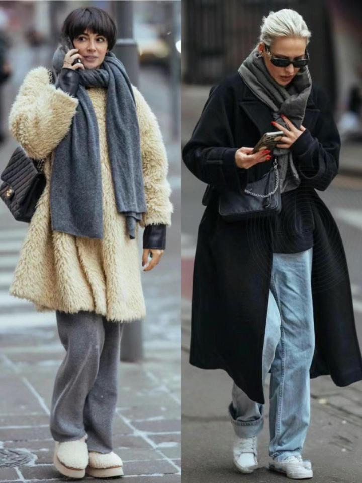 我們可以用厚底鞋來替代高跟鞋,比如厚底的短靴、厚底的雪地靴或者厚底的運動鞋,穿起來都更加利落又顯高。用厚底鞋來搭配直筒褲,簡單又自然。