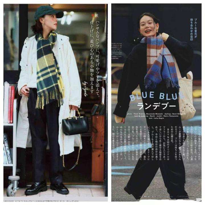 一條長款的格子圍巾,我們可以選擇經典的藍棕是撞色,也可以選擇黑綠撞色。其實撞色的格子圍巾,可以搭配純色系的服裝,表現出更雅緻耐看的美。