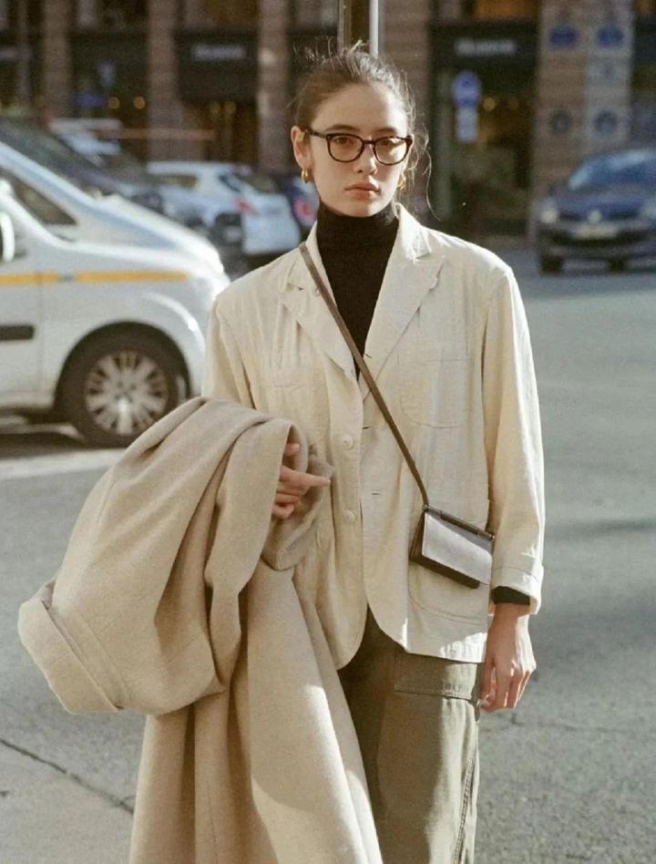 這樣的搭配全身上下都透着一股時髦的知識分子風氣息,溫柔且隨和。