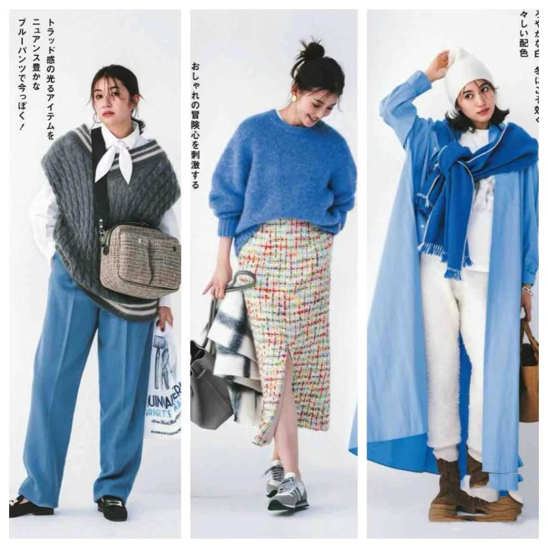 藍色系的毛衣、針織衫、圍巾、西裝褲,都是比較醒目的單品。尤其是藍色圍巾或者藍色毛衣,在寒冷的冬天裏比較耐穿,也可以更加顯白提氣質。