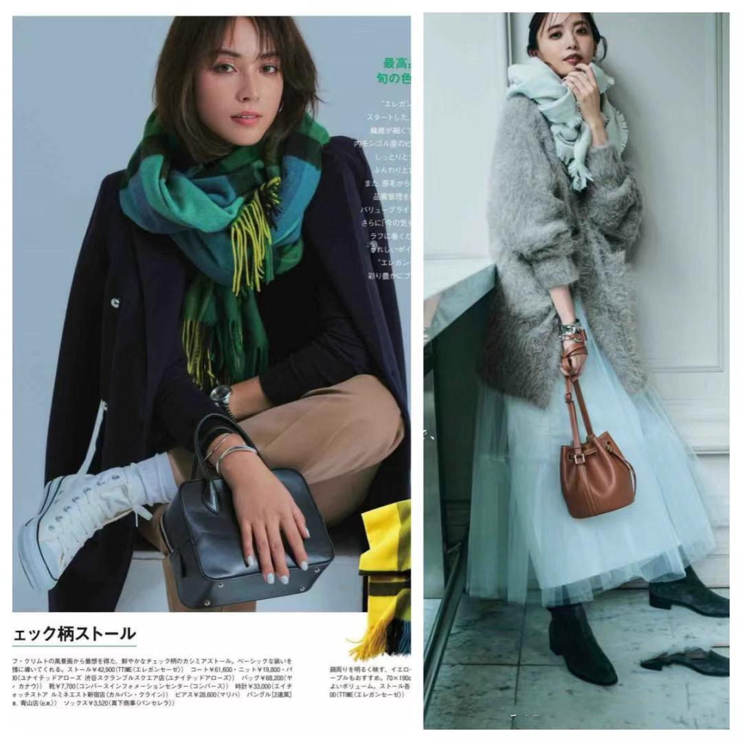 冬天裏的羊絨圍巾,可以選擇比較溫和的色系,也可以搭配高亮度的色系。如果喜歡溫柔素雅一些,就搭配淺色系的圍巾。如果想要時髦醒目一些,可以搭配深色系的圍巾。