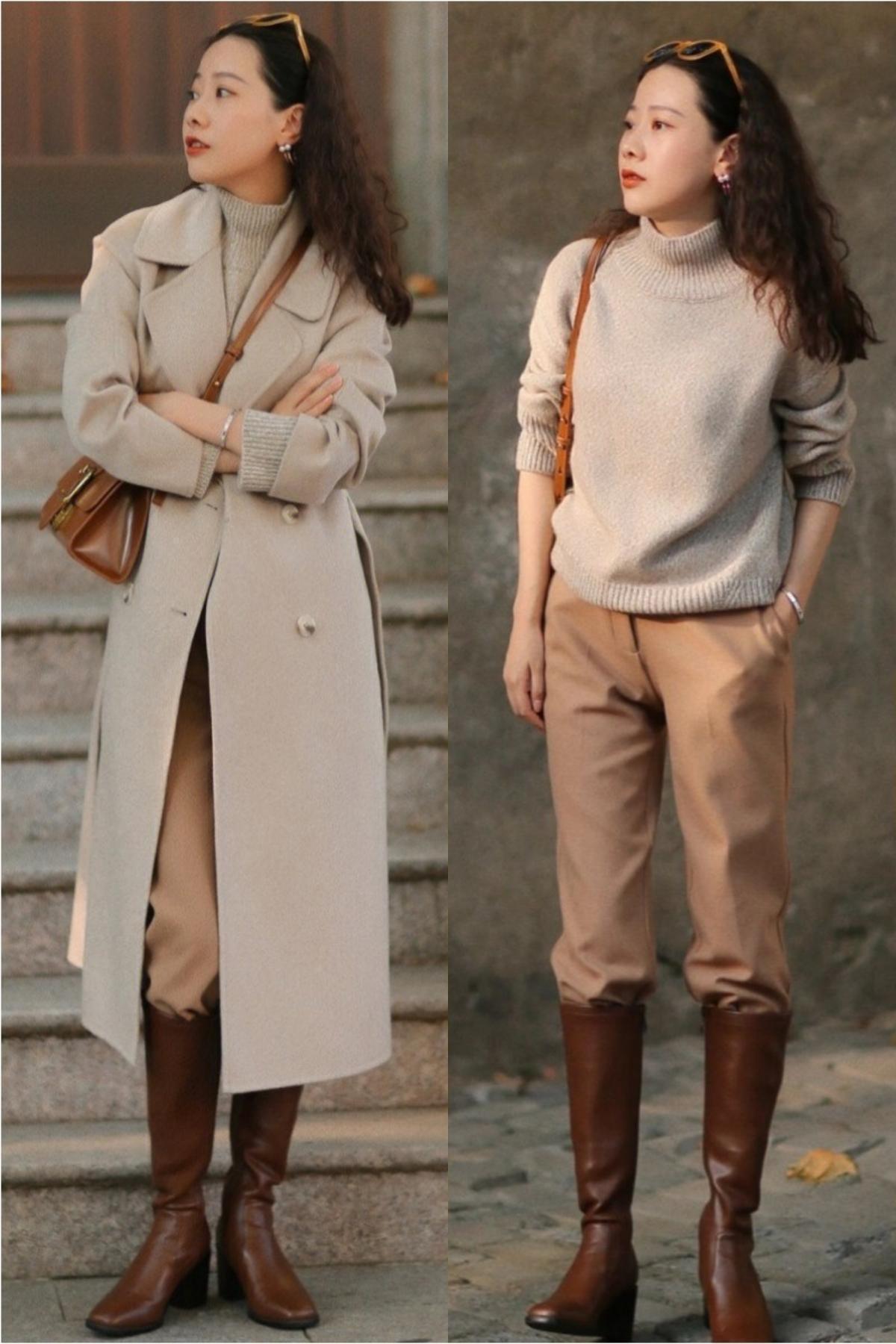 其實溫柔又耐看的穿搭,也會更加適合中年女人。四五十歲的年紀,會更加適合溫婉大方的穿搭。燕麥色大衣配上同色系的毛衣,透着整個人的氣質美。