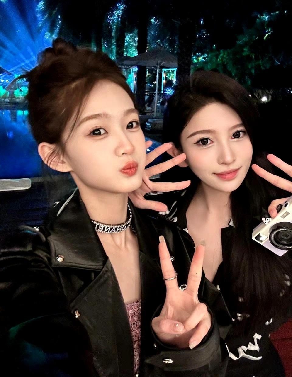 剪髮當日,思聰哥還帶着女友小羽,一身淺色穿搭,清新甜美、甚是吸睛。提到她,想起她前幾天在社交平臺發佈的日常穿搭,皮衣配吊帶裙,同樣露着腿,跟今天的思聰哥穿搭好相似,引得無數粉絲駐足圍觀。