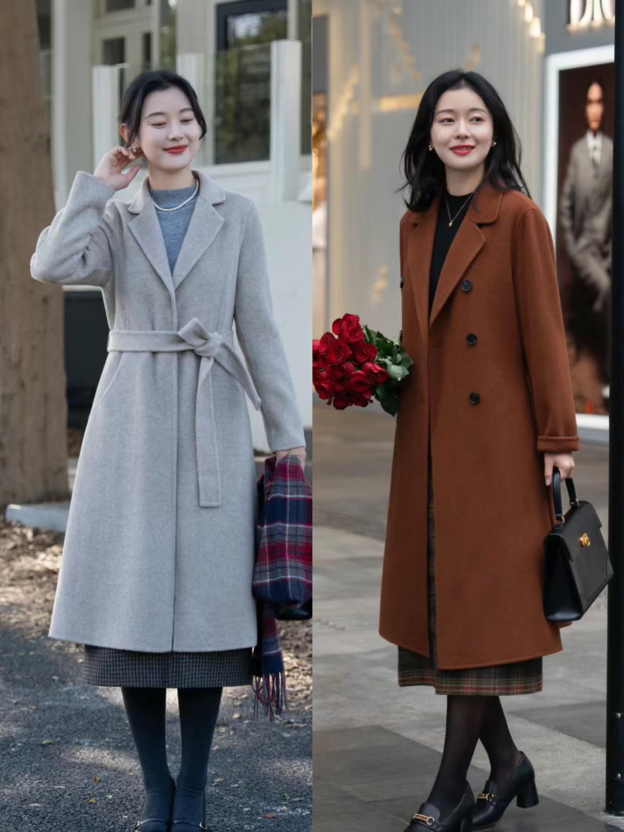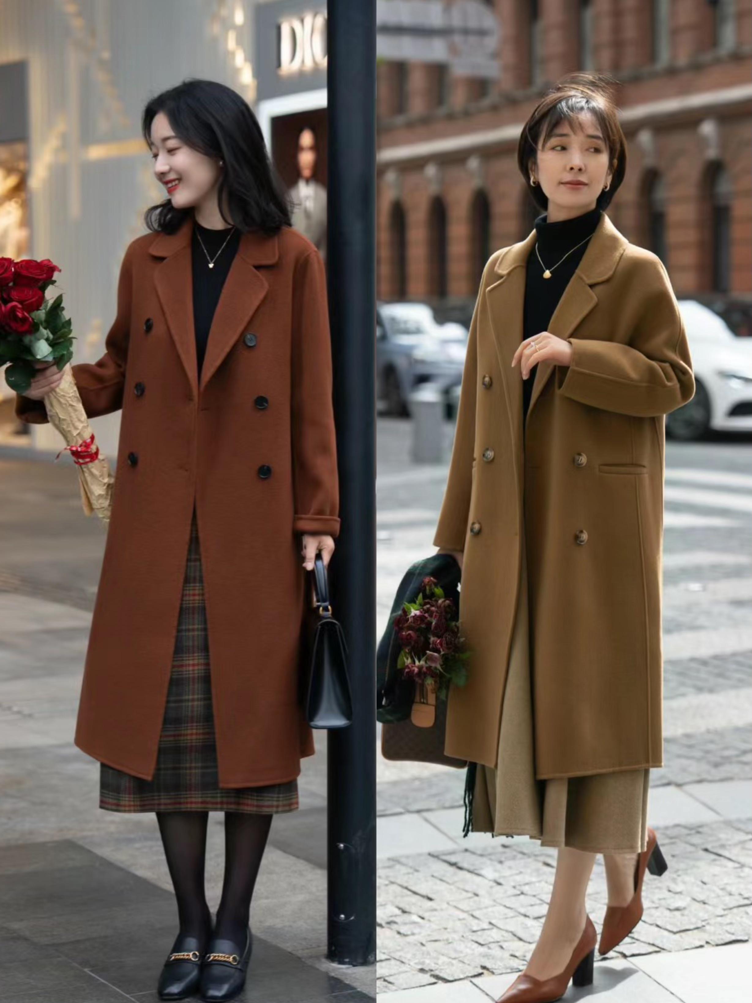 冬天裏的毛呢大衣,不僅可以配相對厚實一點的毛衣,還可以搭配比較修身的針織衫、打底衫。尤其是搭配毛呢褲來穿着,保暖性更強。