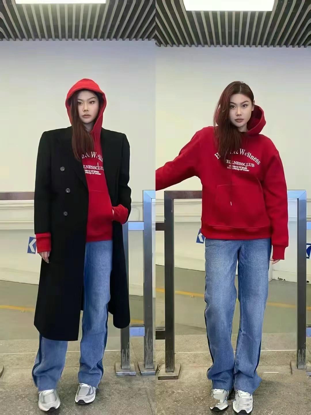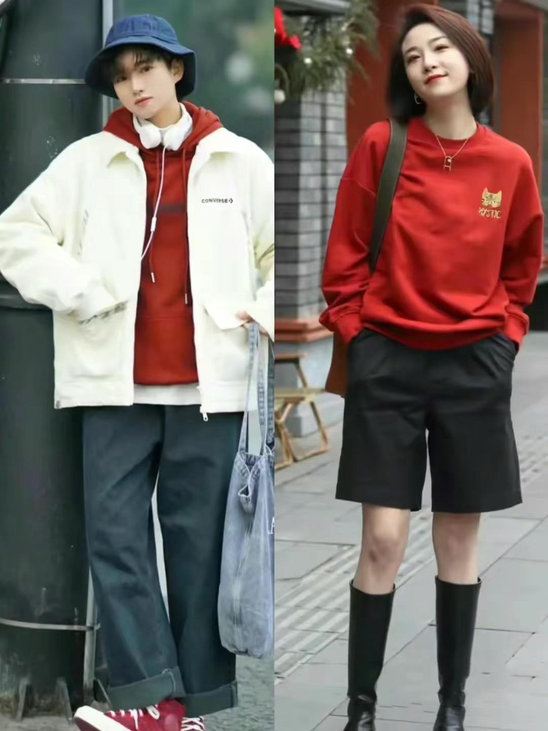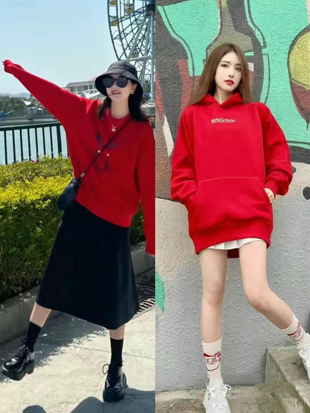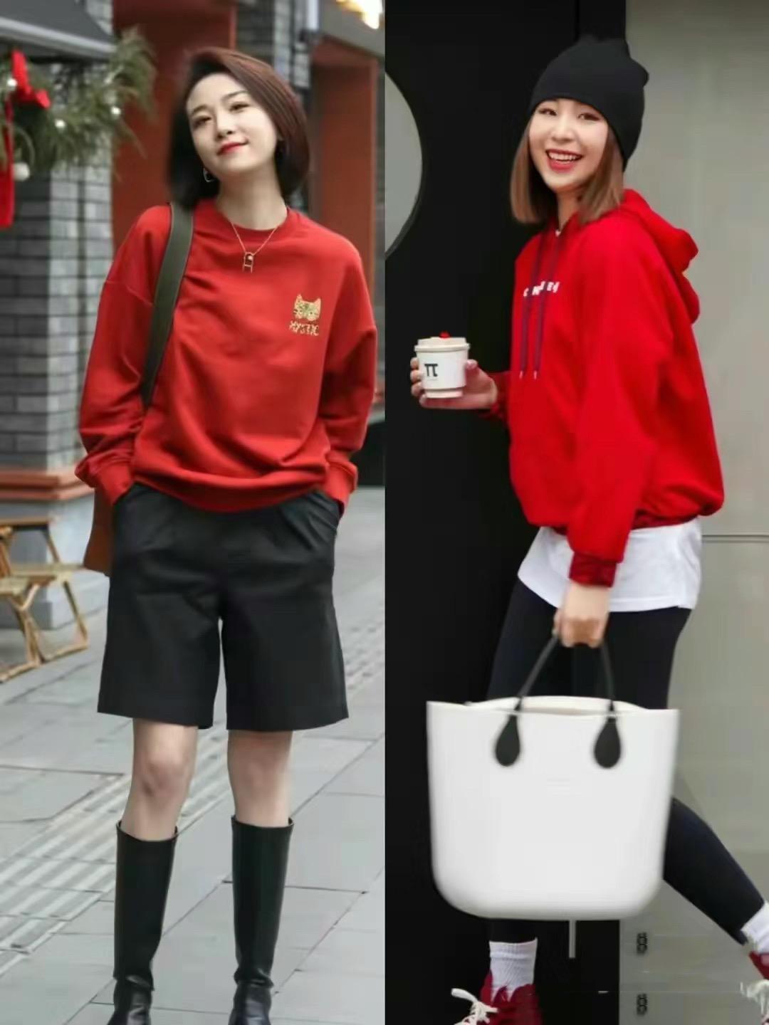 新年穿搭,除了紅色針織衫、紅色毛衣,我們還可以選擇紅色衛衣來穿着。尤其是連帽的紅色衛衣,可以更自然的豐富我們的穿搭層次。