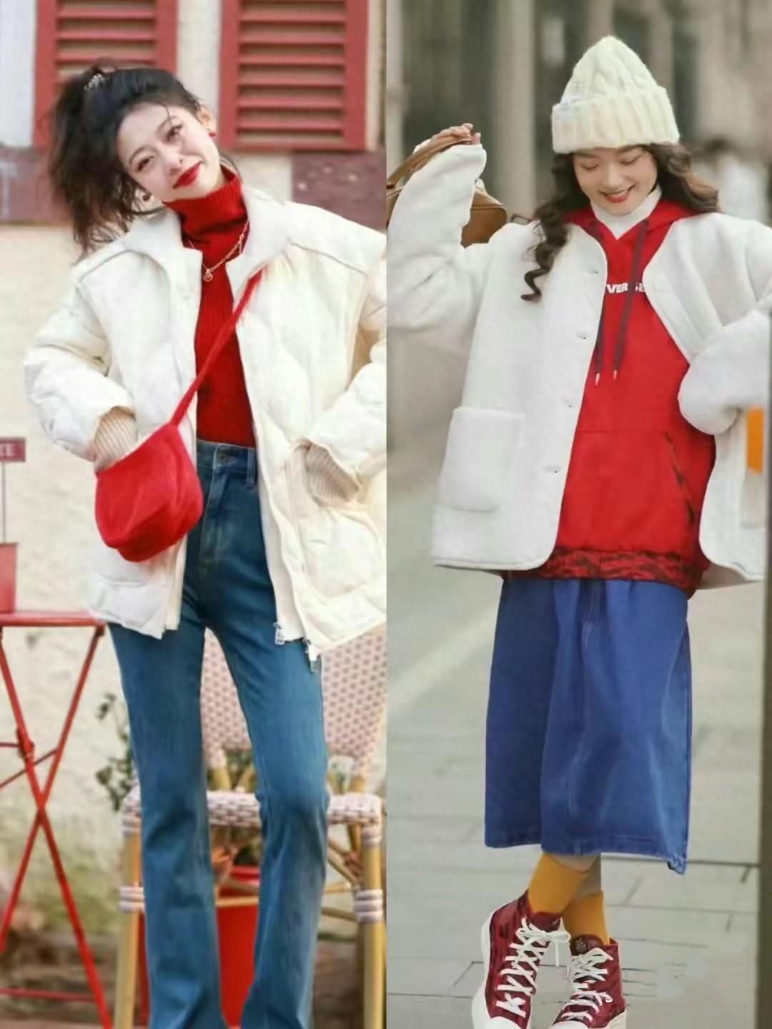 一抹新年紅,將春節的氛圍拉滿。我們可以選擇紅色的高領毛衣、也可以搭配休閒風的紅色衛衣。春節的時候、搭配白色羽絨服或者毛呢外套,都擁有更強的氛圍感。