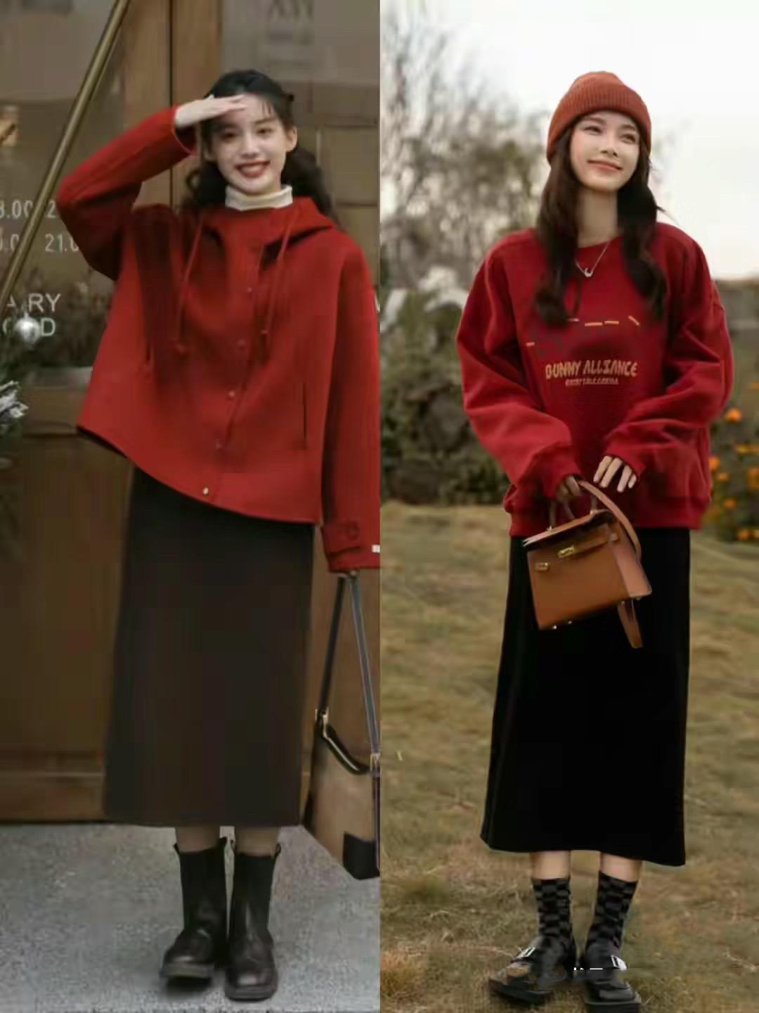 馬上就是春節了,想要氛圍感滿滿的穿搭,一定少不了一抹新年紅呀。紅色的針織衫、打底衫、或者紅色衛衣、紅色鞋子、紅色包包,都可以安排起來。