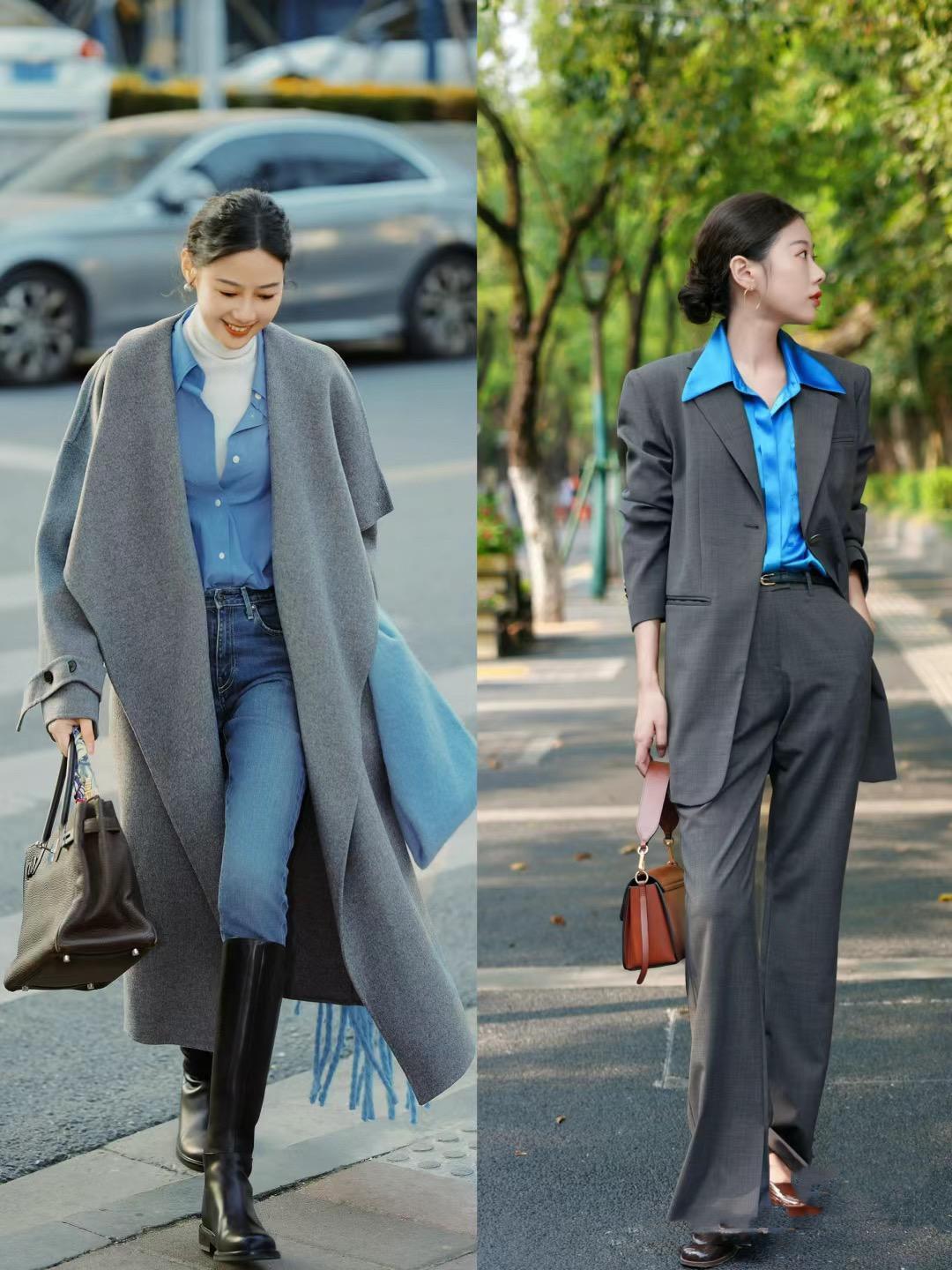 色彩上的深淺對比,也是勾勒層次感的關鍵。我們都知道淺色是膨脹色,一不小心就會很顯胖。如果穿淺色外套的時候,建議大家搭配深色內搭。