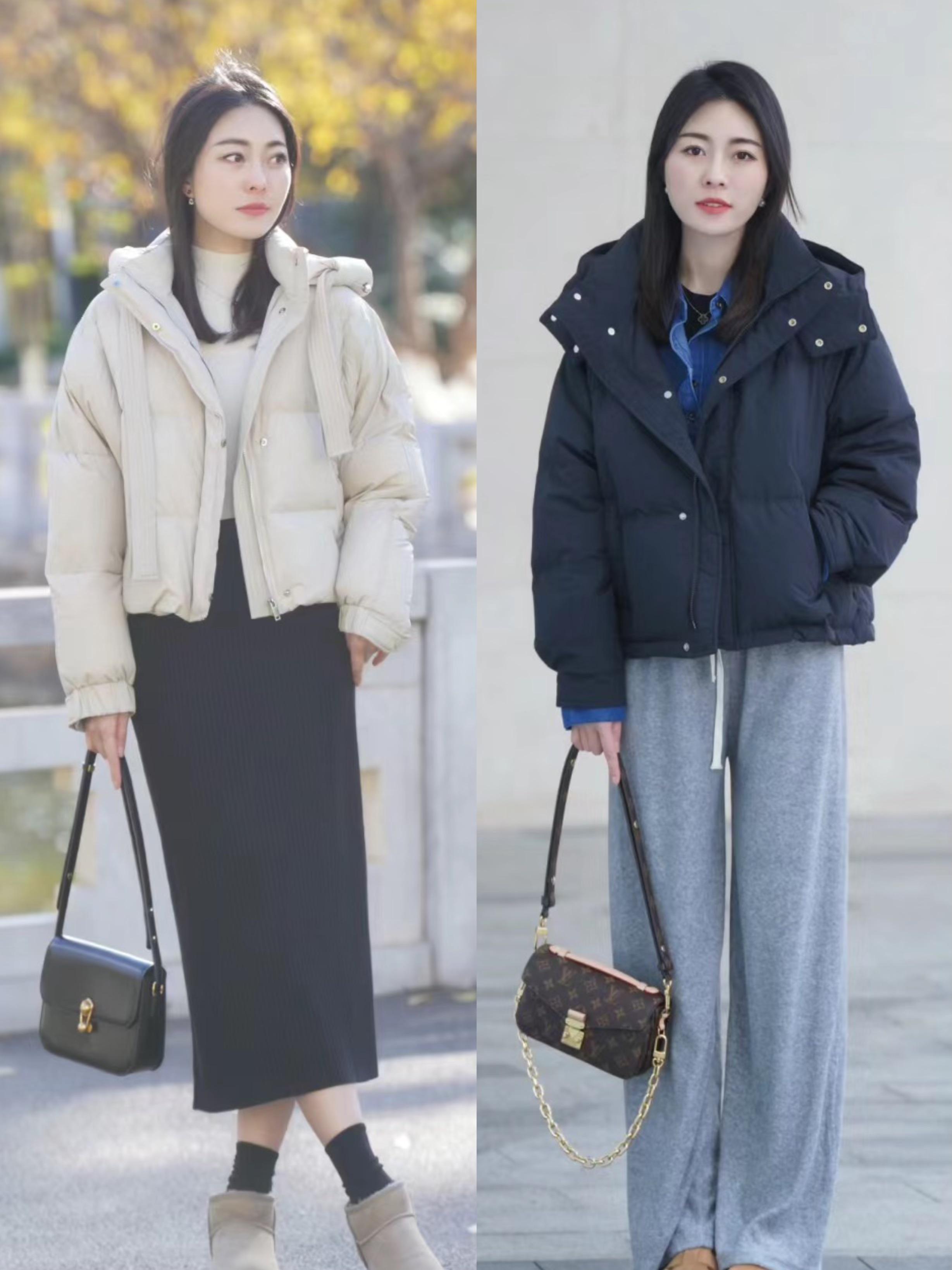 2、短款羽絨服+直筒運動褲