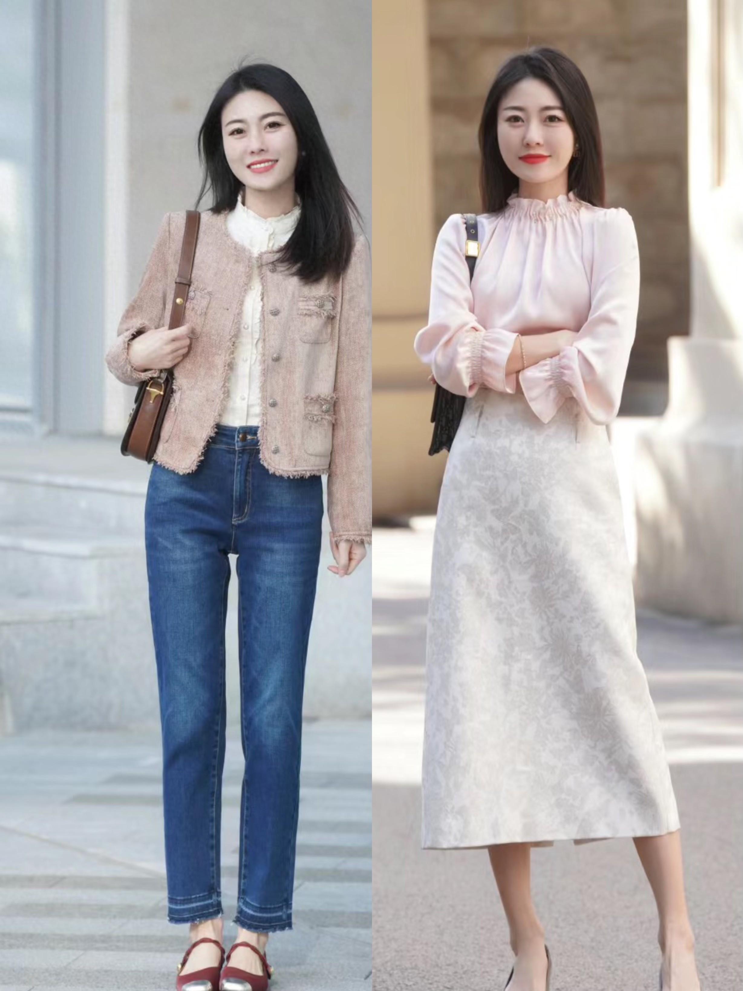 別讓複雜的人事物影響了自己的美,我們可以在簡單幹淨的配色中尋找片刻的清新。比如裸粉色的襯衫,搭配燕麥色的高腰的半身裙,溫柔中帶了幾分清甜,讓人覺得舒適自然。