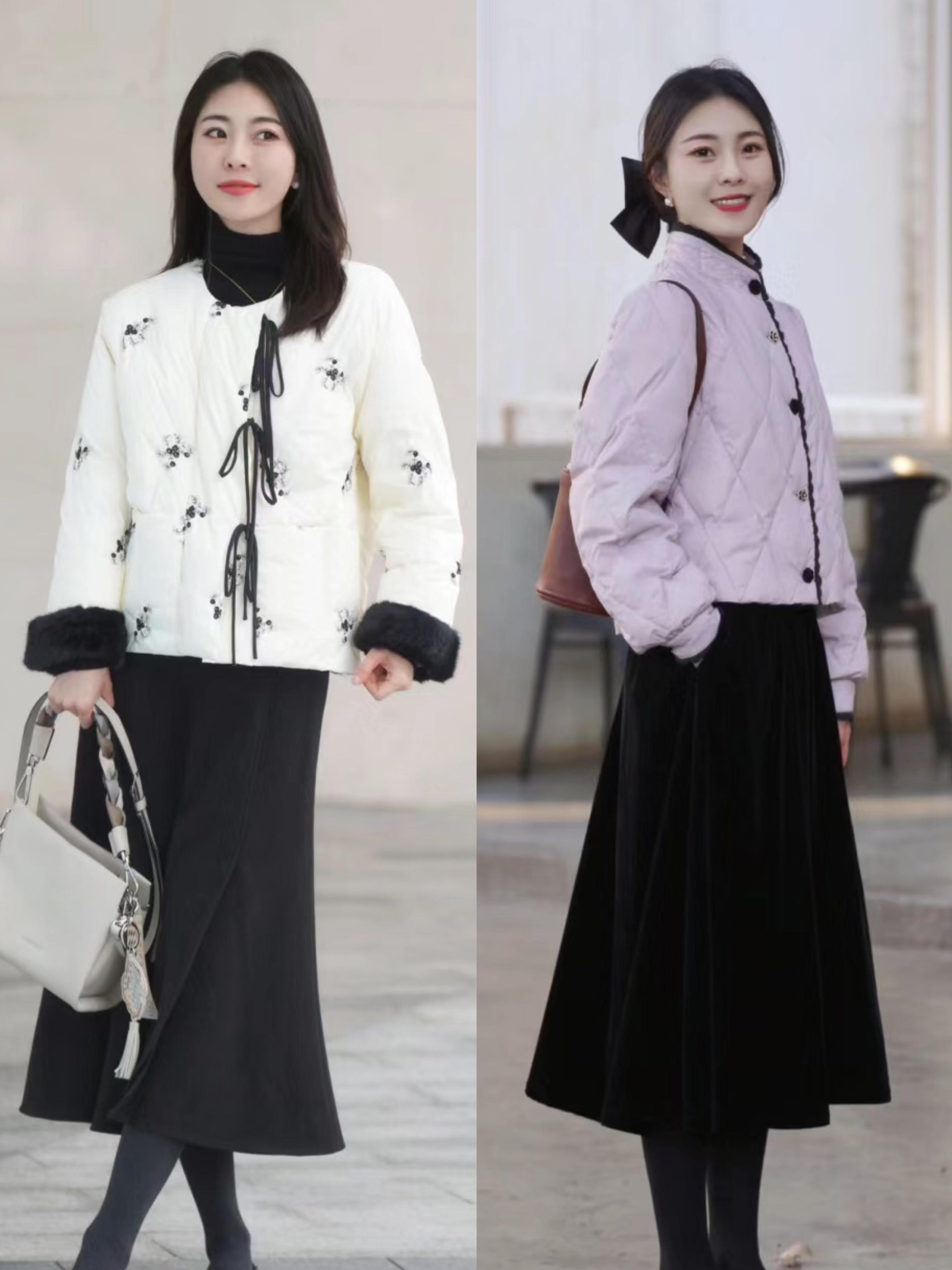 國風元素的服裝,也是越來越受歡迎了。尤其是年底的時候,大家也會準備各種國風元素的新年裝,在溫度還比較低的時候,我們也可以穿國風羽絨服配A字形的半身裙。