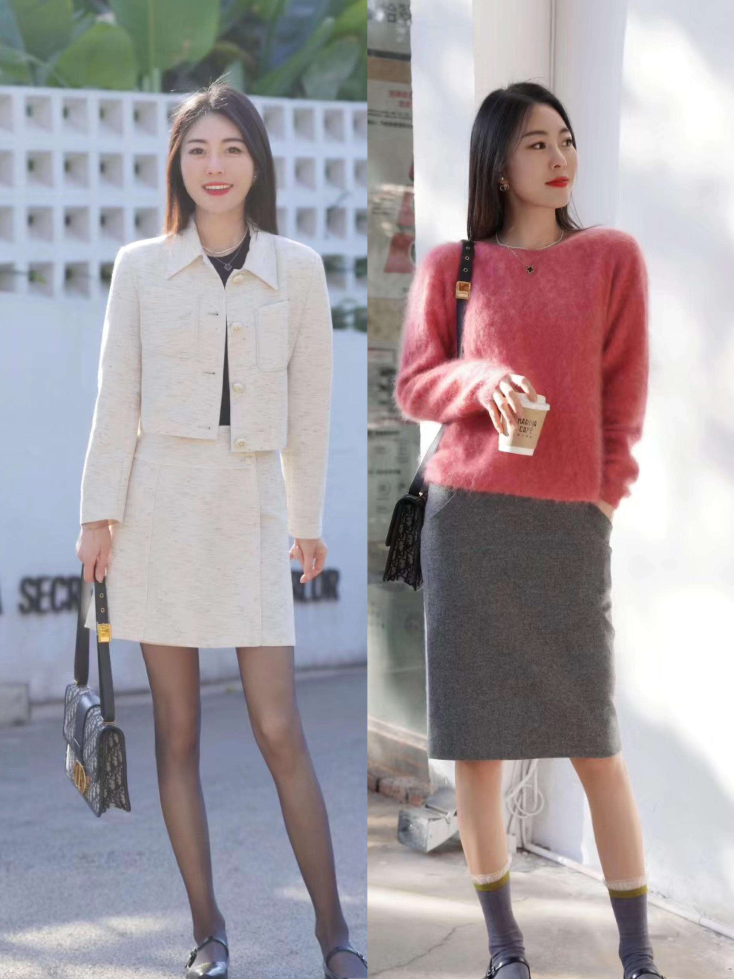 簡單幹淨的配色,可以很溫柔、也可以很高級。穿一身白色的小香風套裝,搭配了修身的黑色打底衫作爲內搭,經典的黑白配高級又耐看。