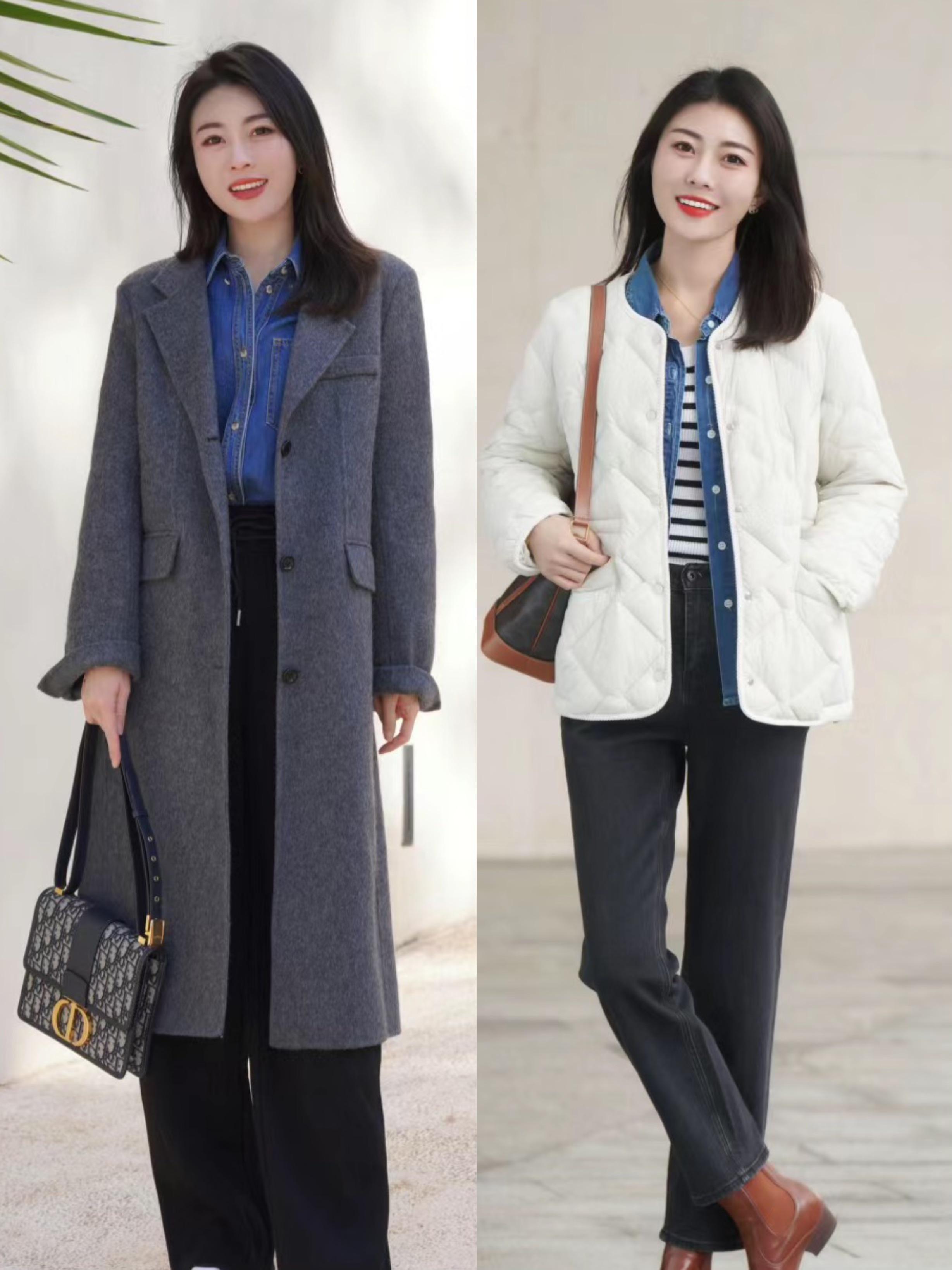 絎縫羽絨服保暖不臃腫,我們可以搭配直筒的牛仔褲來穿着。高腰的直筒牛仔褲,配上比較硬挺的面料,就可以顯得雙腿筆直修長。
