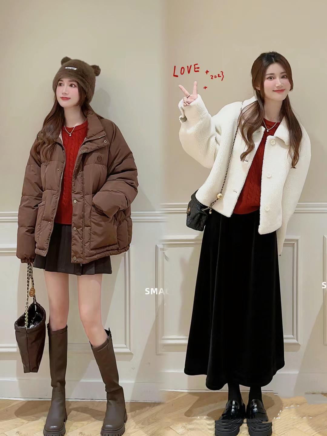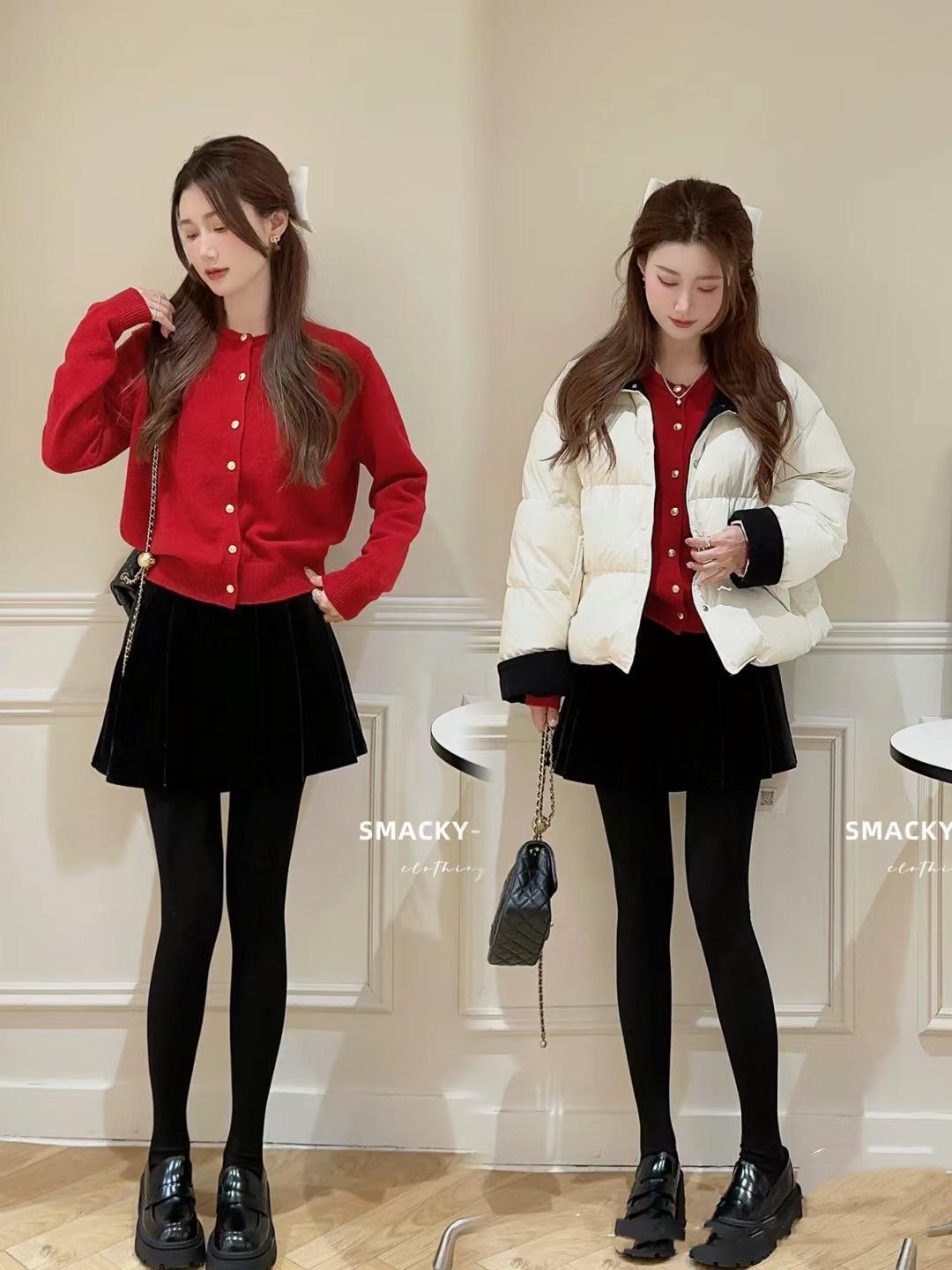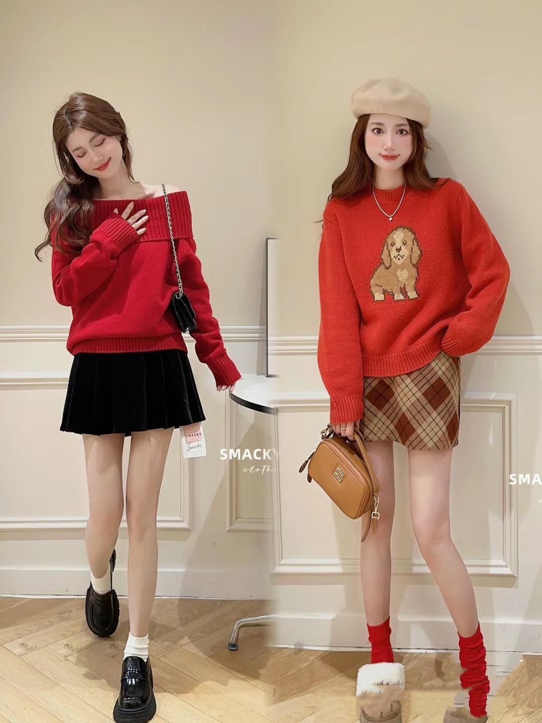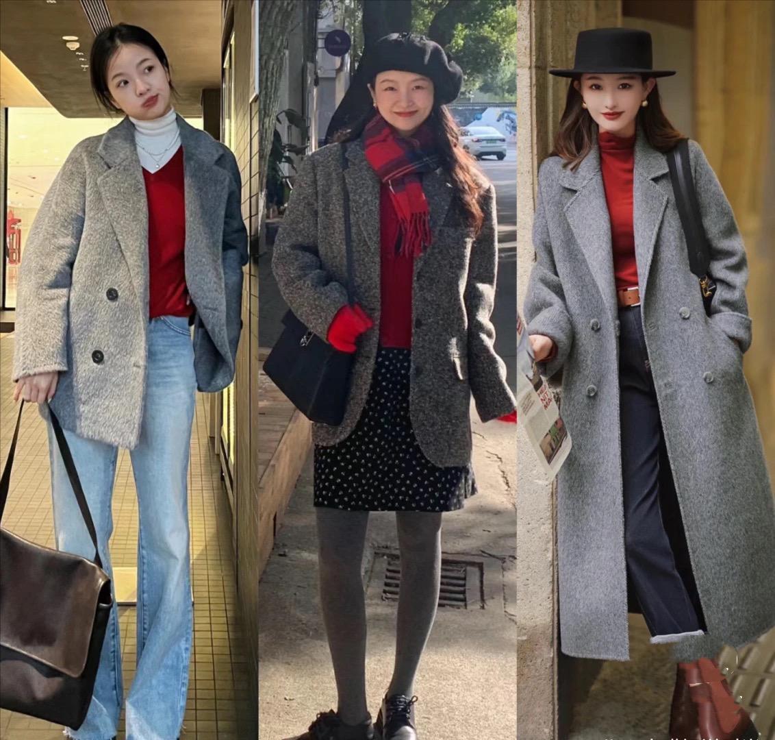如果喜歡更加慵懶自然的美,那麼可以選擇寬鬆一點的套頭毛衣。如果想要更加層次清晰的美,我們可以搭配開衫的紅色毛衣,並且選擇疊穿的方式。