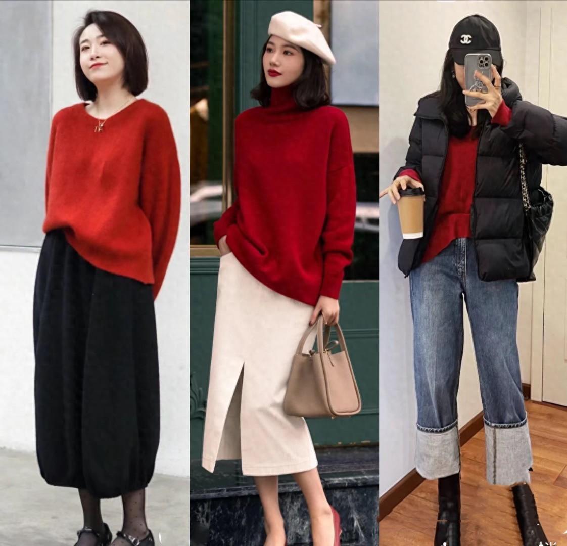 想要更應景的新年穿搭,一定要有一件“紅色毛衣”。如果擔心紅色毛衣很容易穿出土氣感,我們可以借鑑這些搭配思路,照着穿時髦減齡又襯膚色。