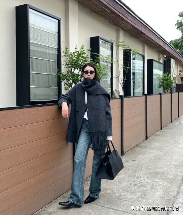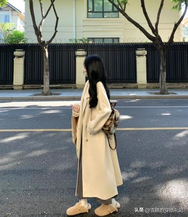 大衣用來組合加長的褲子,褲腿的長度一定要遮過腳踝,在視覺上去優化小腿延伸的效果,平底鞋或者短靴的穿法,都可以維護腿長線條走向,拔高了整體身材的立體程度。