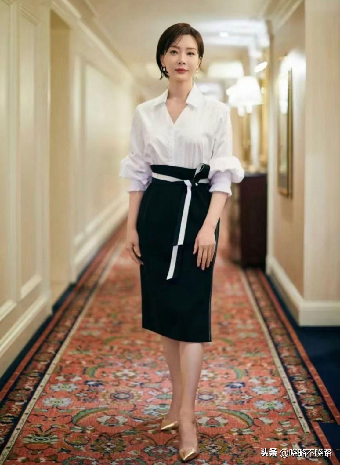 而在四五十歲這個年齡階段,在選擇裙子長度的時候還是要以膝蓋以下的長度爲優選進行搭配,整體呈現出來的莊重和得體感還是非常明顯的。 所以對於女藝人陳數和董卿而言,在很多場合當中所選擇的裙裝搭配都是以長裙爲主。