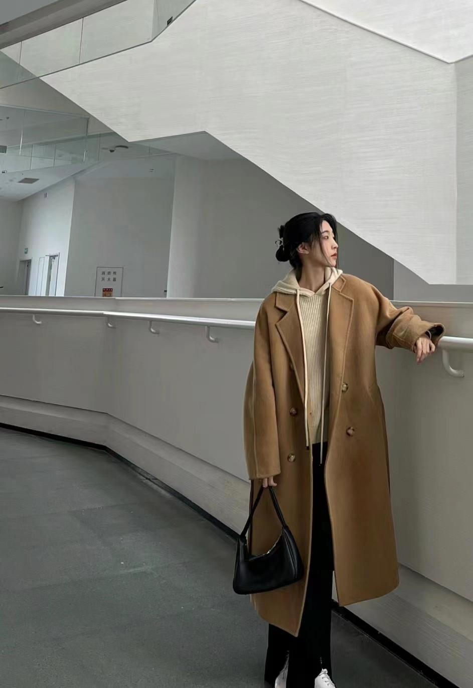駝色大衣搭配粉色西裝外套也是不錯的穿搭方式,不過,它對於穿着者的搭配功底有一定的要求,相比較而言,我更建議大家嘗試“同色系”,人人都能駕馭。