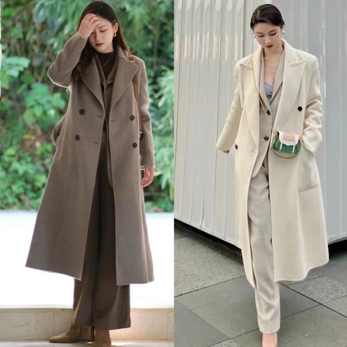 左圖中的灰色大衣疊穿同色系西裝外套,既簡單大氣又不失幹練利落氣息;右圖中的白色大衣也是搭配同色系西裝外套,同樣簡潔利落不說,還百搭好穿,不易出錯。