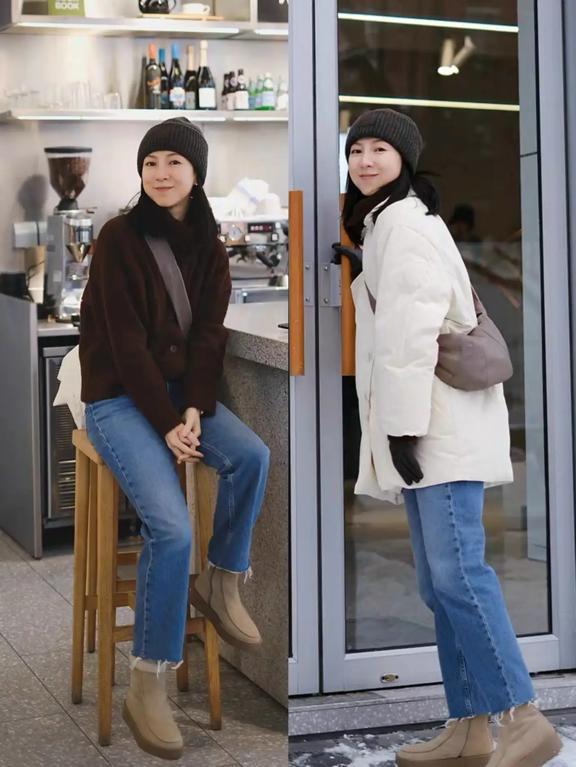 簡簡單單的直筒牛仔褲,如何才能表現出時尚大氣的氛圍呢?最簡單的方法就是與基礎款的針織衫進行搭配,簡單耐看還不挑人。