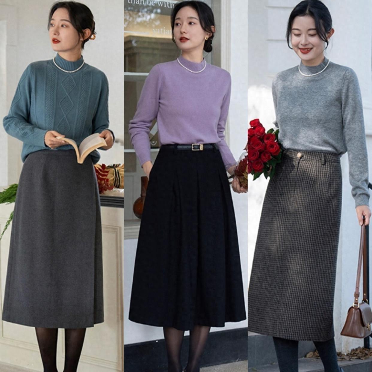 不浮誇、不低調,在氣質平和的穿搭中展現自我。像這種低調溫和的打底衫,運用了絞花修飾,大方精緻又耐看。我們可以配高腰的毛呢半身裙,就可以塑造出中年女性的優雅。