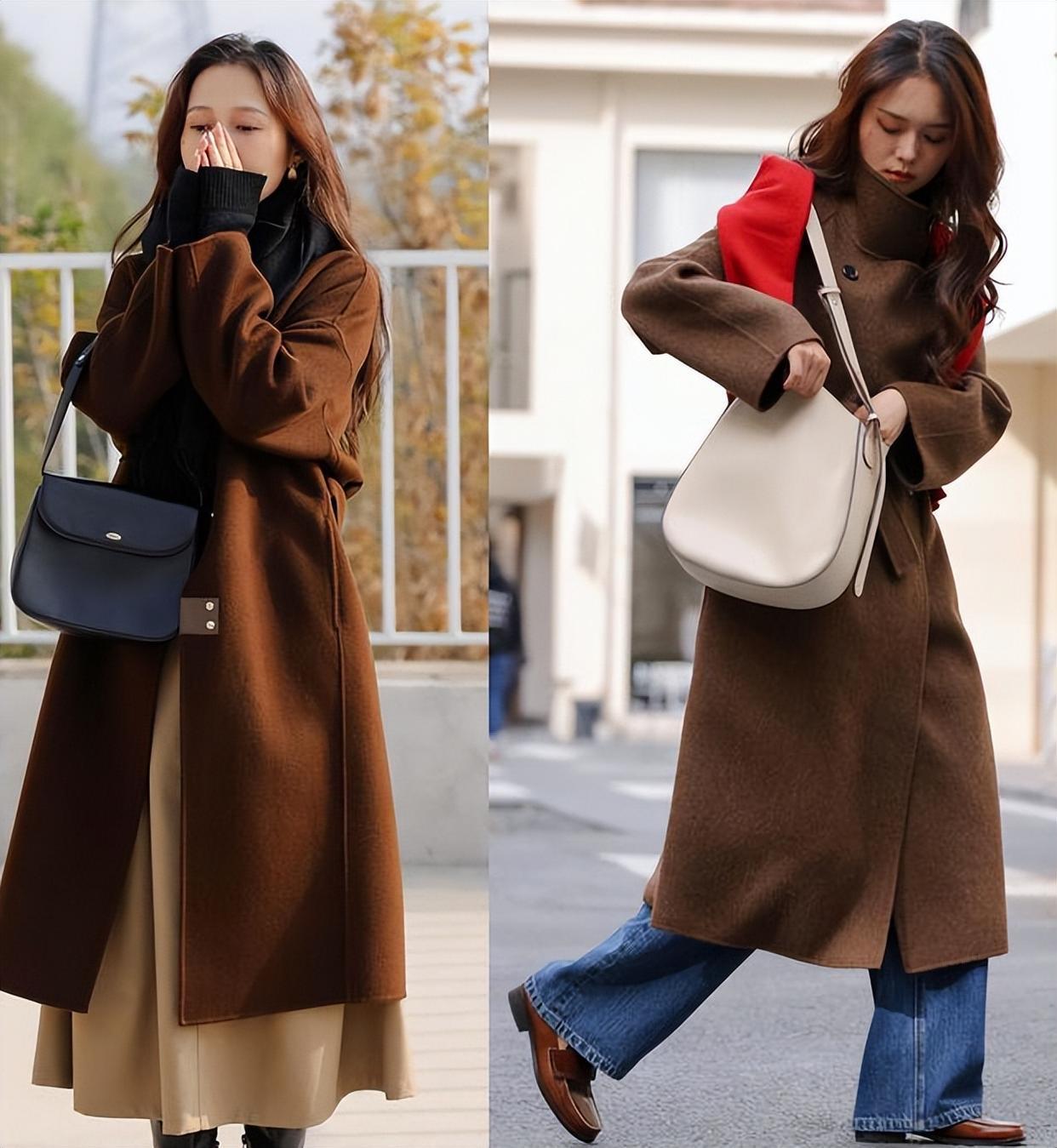 在寒冷的冬天裏,我們可以選擇半高領的打底衫,來搭配寬鬆的棕色毛呢外套、有一種更加舒適大方的效果。修身打底衫含蓄內斂、經典的黑色又格外耐看,四五十歲的女人也可以駕馭。