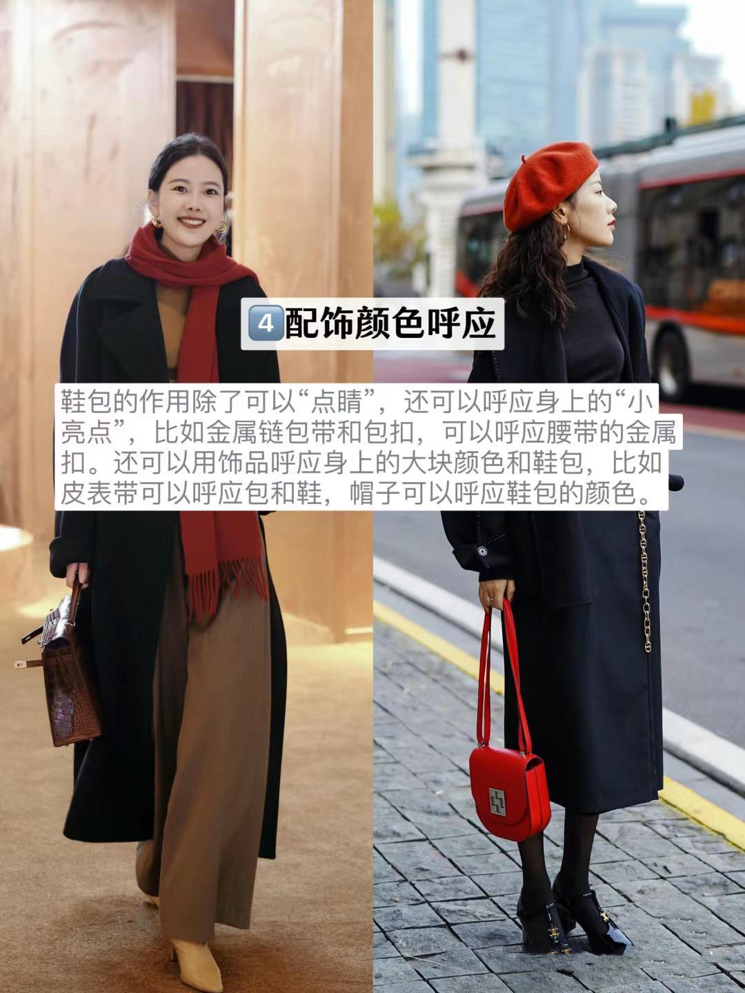 鞋包與配飾的搭配,也是整體穿搭的重點。因爲鞋包除了整體點亮以外,還可以呼應身體上的小亮點。