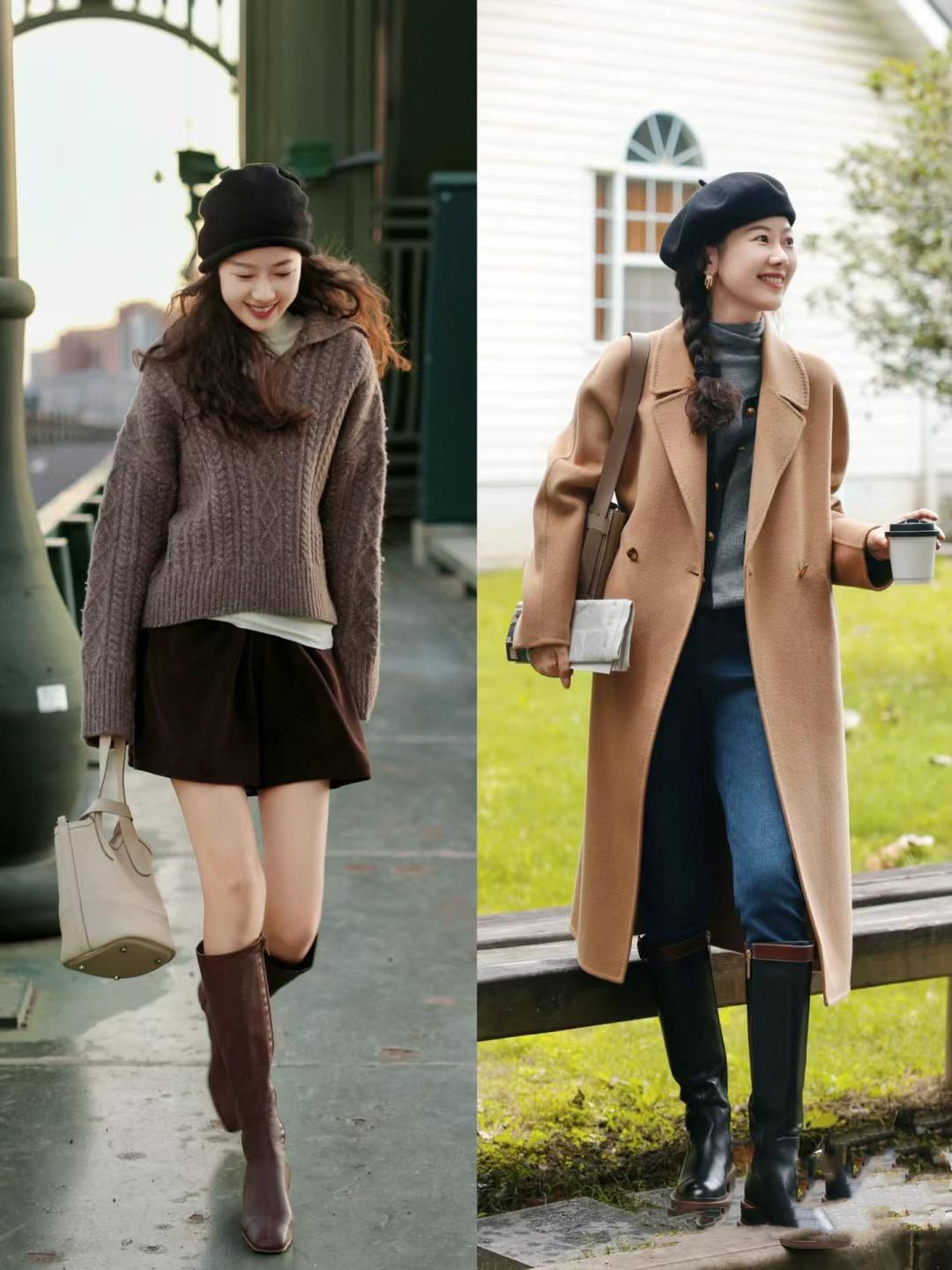 我們可以用利落簡約的駝色大衣,來搭配修身的高腰牛仔褲。修身的高腰牛仔褲,不僅抬高了腰線、還表現出雙腿的纖細修長,搭配厚底騎士靴氣場十足。