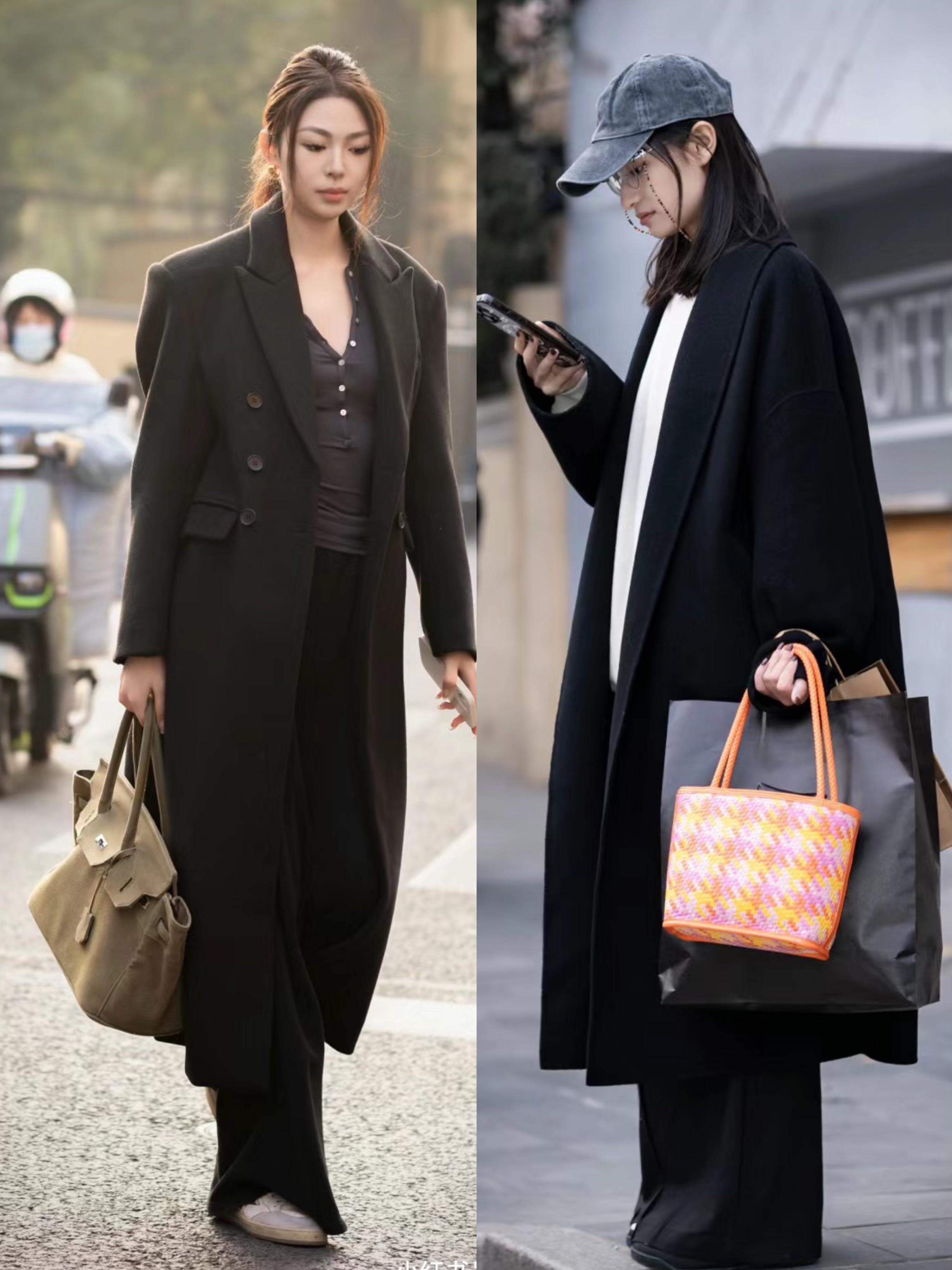 黑色系在上海街拍中之所以那麼受歡迎,是因爲它具備了更加高級冷豔的效果。黑色系的長大衣、黑色系的闊腿褲,黑色系的修身針織衫,都很耐穿。