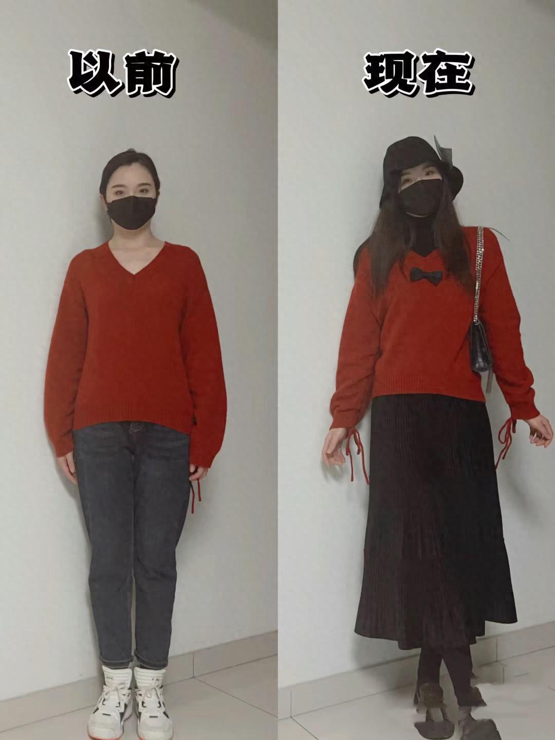 過年不買新衣服,就把去年的紅色毛衣或者針織衫拿出來吧。只需要在搭配方式上,稍微做一點改進,就可以讓紅色針織衫煥發新的活力。