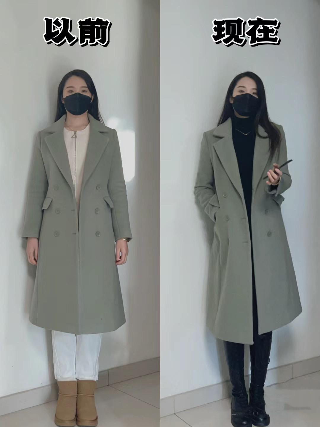 灰綠色的毛呢大衣,透着幾分復古的氛圍,在新年的時候也可以直接拿出來穿。想要穿出新花樣,就換一種搭配思路,如果覺得配淺色內搭更溫柔,我們可以配深色內搭更顯瘦。